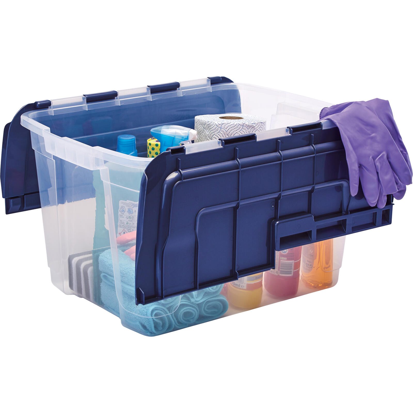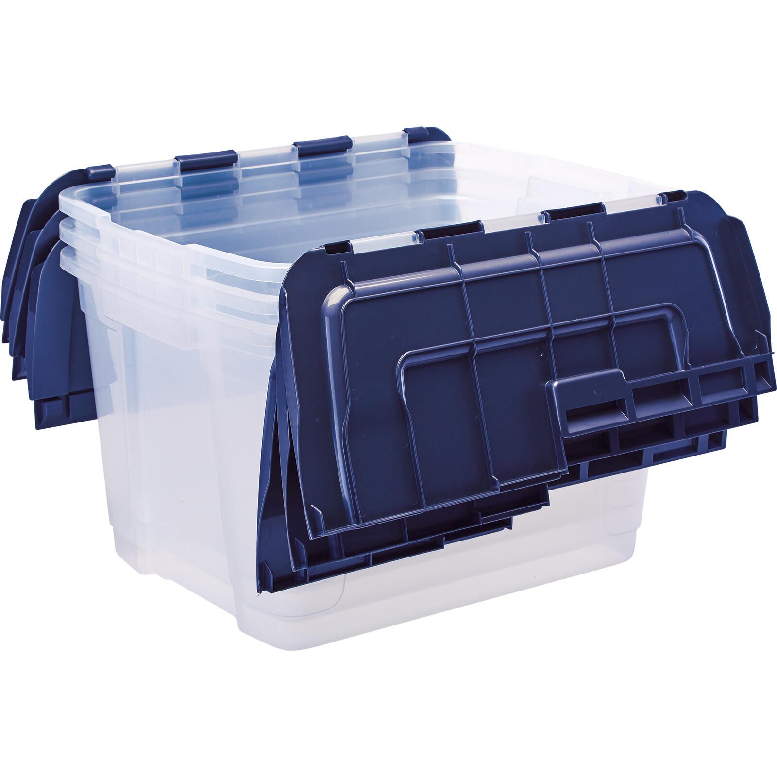 • Scharnierdeckel mit 2 Teilen - Der Deckel ist in 2 Hälften geteilt und lässt sich auf verschiedene Weise öffnen, Platzsparend - Diese Boxen sind so konzipiert, dass sie ineinander geschoben werden können, wenn sie leer sind, oder übereinander, wenn sie