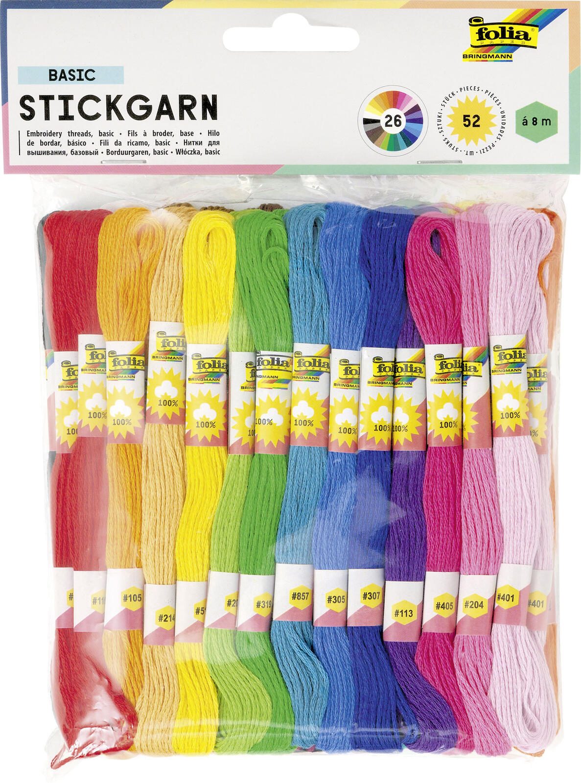 Das folia Garn Basic mehrfarbig bietet dir Vielseitigkeit und Qualität für deine kreativen Projekte. Mit 52 Docken à 8 Meter in 26 sortierten Farben ist dieses Garnset die perfekte Ergänzung für deine Handarbeiten.