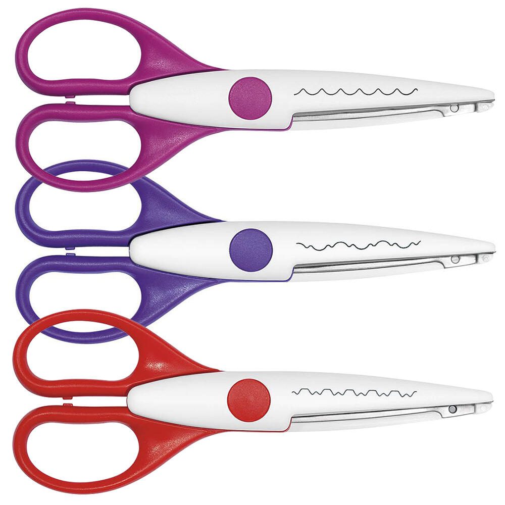 Das WEDO Konturenscheren-Set mit einer Länge von 16 cm ist ein unverzichtbares Werkzeug für kreative Bastelarbeiten. Dieses Set umfasst drei farbenfrohe Scheren in den attraktiven Farben pink, violett und rot, die nicht nur durch ihre Optik bestechen, sondern auch durch ihre Funktionalität. Die spitzen Klingen aus hochwertigem Stahl ermöglichen präzise Schnitte und sorgen dafür, dass du auch filigrane Designs mühelos umsetzen kannst. Die ergonomisch gestalteten Griffe aus robustem Kunststoff liegen angenehm in der Hand und bieten dir einen sicheren Halt während des Arbeitens. Egal, ob du Papier, Karton oder andere Bastelmaterialien bearbeitest, die WEDO Konturenscheren sind ideal geeignet, um deiner Kreativität freien Lauf zu lassen. Sie sind perfekt für verschiedene Bastelprojekte, sei es für Schulprojekte, Scrapbooking oder einfach für die Freizeitgestaltung. Mit diesem Konturenscheren-Set erhältst du nicht nur ein praktisches Werkzeug, sondern auch eine farbenfrohe Ergänzung für dein Bastelzubehör. Die Kombination aus hochwertigen Materialien und durchdachtem Design macht diese Scheren zu einem zuverlässigen Begleiter bei all deinen kreativen Vorhaben. Entdecke die Freude am Basteln und erlebe, wie einfach es ist, mit den WEDO Konturenscheren beeindruckende Ergebnisse zu erzielen.Technische Daten