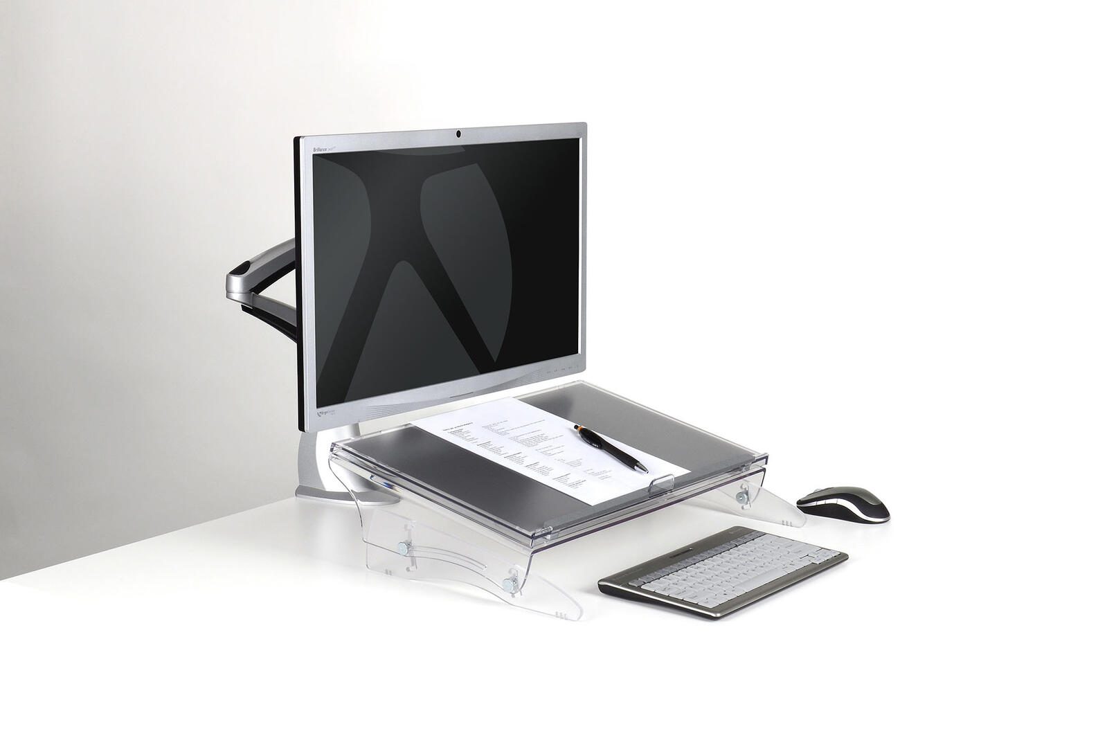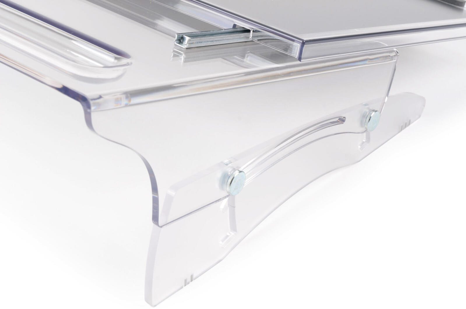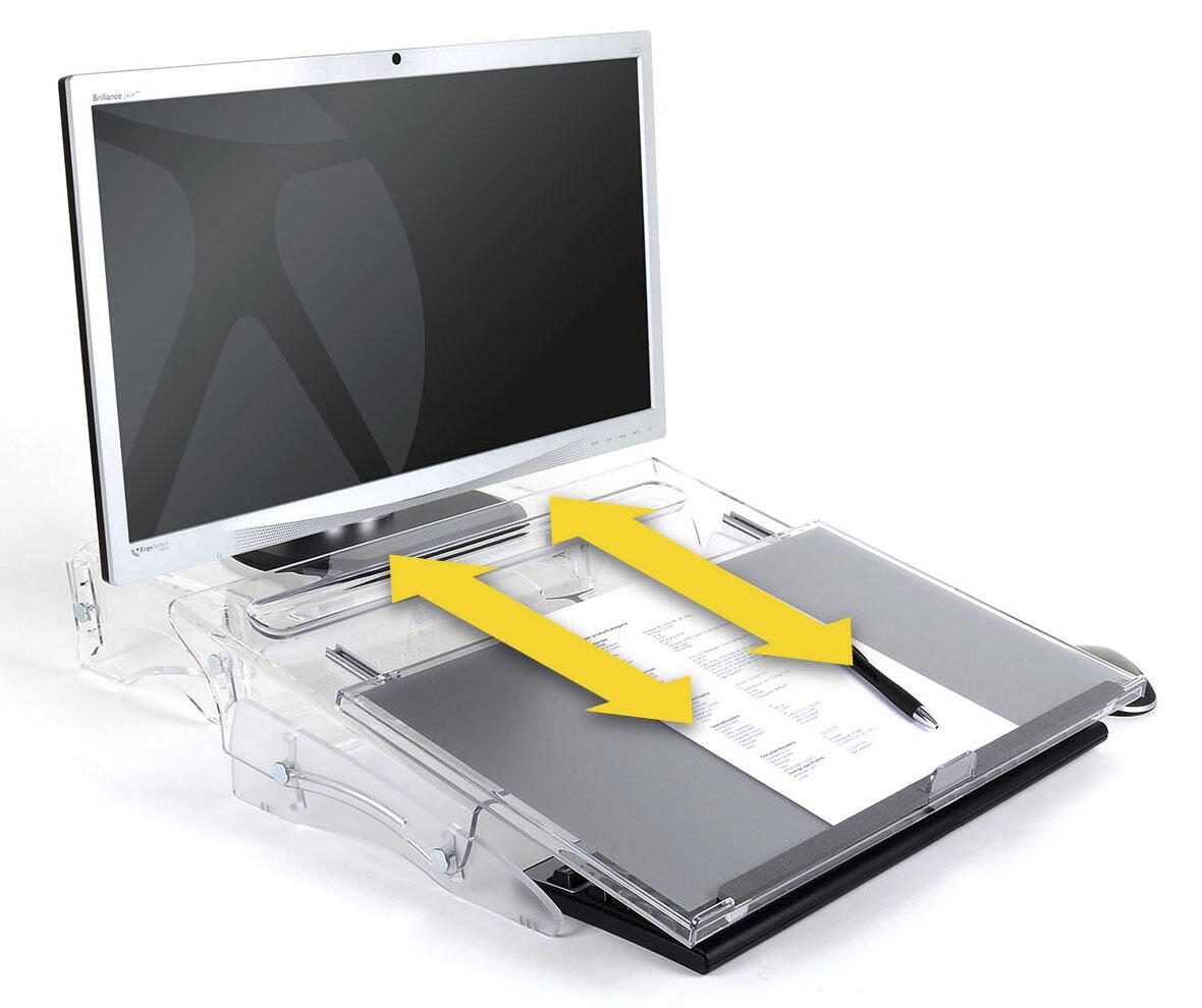 Der BAKKER ELKHUIZEN Konzepthalter transparent ist eine ideale Lösung für alle, die eine praktische und stilvolle Möglichkeit suchen, ihre Dokumente und Notizen zu präsentieren. Mit seinen kompakten Maßen von 51,5 x 38,0 x 11,0 cm passt dieser Konzepthalter perfekt auf jeden Schreibtisch und bietet Ihnen ausreichend Platz für Ihre Unterlagen. Hergestellt aus hochwertigem Acryl, zeichnet sich der Konzepthalter durch seine Transparenz aus, die eine elegante und moderne Optik verleiht. Dies ermöglicht es Ihnen, Ihre Dokumente sichtbar zu präsentieren, ohne dass der Halter selbst ablenkt. Ein weiteres herausragendes Merkmal ist die Höhenverstellbarkeit des Halters, die von 11,0 bis 18,5 cm reicht. Dadurch können Sie die optimale Sicht- und Leseposition einstellen, was besonders bei längeren Lese- oder Schreibarbeiten von Vorteil ist. Die selbstklebende Rückseite sorgt für eine einfache und sichere Befestigung auf verschiedenen Oberflächen, sodass der Konzepthalter stabil bleibt und Ihre Dokumente stets gut sichtbar sind. Ob im Büro, im Homeoffice oder in der Schule, der BAKKER ELKHUIZEN Konzepthalter ist vielseitig einsetzbar und unterstützt Sie dabei, Ihre Arbeitsumgebung organisiert und ansprechend zu gestalten. Die Kombination aus Funktionalität und ansprechendem Design macht diesen Konzepthalter zu einem unverzichtbaren Accessoire für jeden Arbeitsplatz. Genießen Sie die Vorteile eines klar strukturierten Arbeitsbereichs und halten Sie Ihre Ideen und Informationen stets griffbereit.Technische Daten