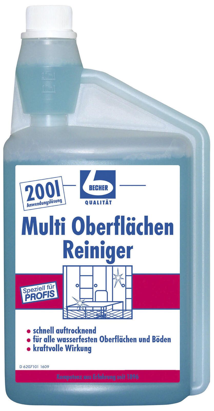 Vertraue auf die bewährte Qualität von Becher, einem Hersteller, der für seine hochwertigen Reinigungsprodukte bekannt ist. Mit dem Becher Multiflächenreini.1,0l erhältst du ein leistungsstarkes Reinigungsmittel, das effektiv und schonend zugleich ist.