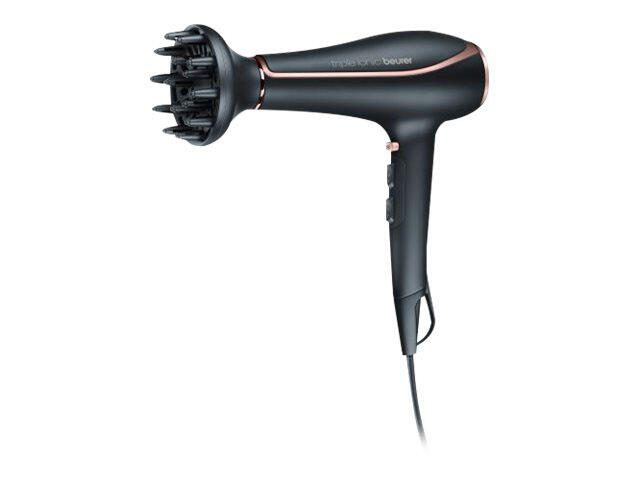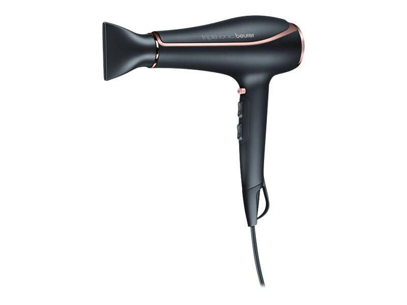 - Abnehmbarer Lufteinlaßfilter, Sicherungsausschalter gegen Überhitzung, Kaltlufttaste, dreifache Ionen-Technologie