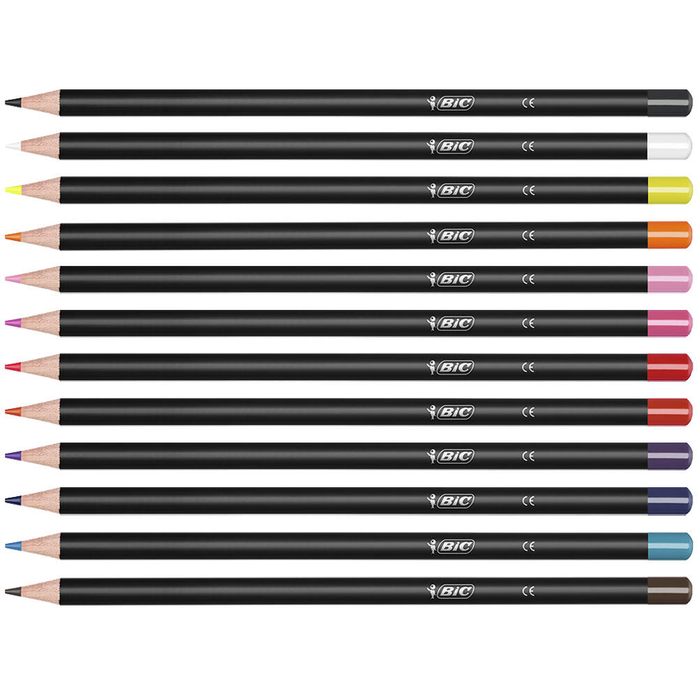 Die BIC® Buntstifte Mehrfarbig bieten dir eine kreative Palette von 12 lebendigen Farben, die deine Zeichnungen und Kunstwerke zum Leben erwecken. Mit einer Vielzahl an Farben wie Schwarz, Dunkellila, Dunkelblau, Blau, Helltürkis, Grün, Weiß, Fleischfarben, Gelb, Orange, Rosa, Rot und Braun, sind diese Buntstifte ideal für Schüler, Hobbykünstler und alle, die Spaß am Malen haben. Die spezielle Dreikantform der Stifte sorgt nicht nur für eine ergonomische Handhabung, sondern ermöglicht auch ein präzises Zeichnen und Malen. Du wirst feststellen, dass die bruchfeste Mine durch Hartverleimung besonders langlebig ist, was dir ein ungestörtes Malvergnügen garantiert. Diese hohe Qualität der Mine verhindert, dass die Stifte während des Gebrauchs brechen, sodass du dich ganz auf deine Kreativität konzentrieren kannst. Verpackt in einem praktischen Karton-Etui, sind die BIC® Buntstifte leicht zu transportieren und ideal für den Einsatz in der Schule, zu Hause oder unterwegs. Die umfangreiche Farbpalette ermöglicht es dir, deiner Fantasie freien Lauf zu lassen und deine Ideen in lebendigen Farben auszudrücken. Egal, ob du mit Freunden malst, ein Schulprojekt gestaltest oder einfach nur entspannen möchtest, diese Buntstifte sind die perfekte Wahl. Mit den BIC® Buntstiften Mehrfarbig erhältst du nicht nur ein hochwertiges Produkt, sondern auch ein Werkzeug, das dir hilft, deine künstlerischen Fähigkeiten zu entfalten und deine Kreativität zu fördern. Lass deiner Fantasie freien Lauf und entdecke die Freude am Malen mit diesen vielseitigen Buntstiften.Technische Daten