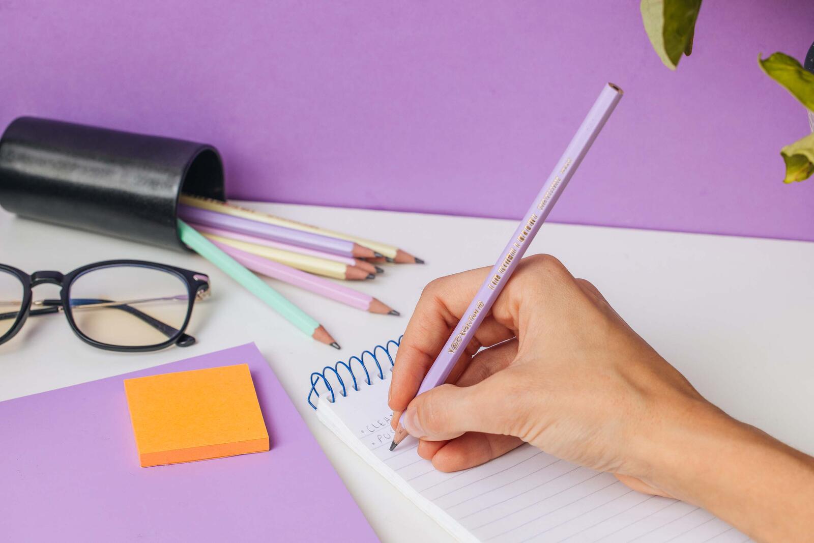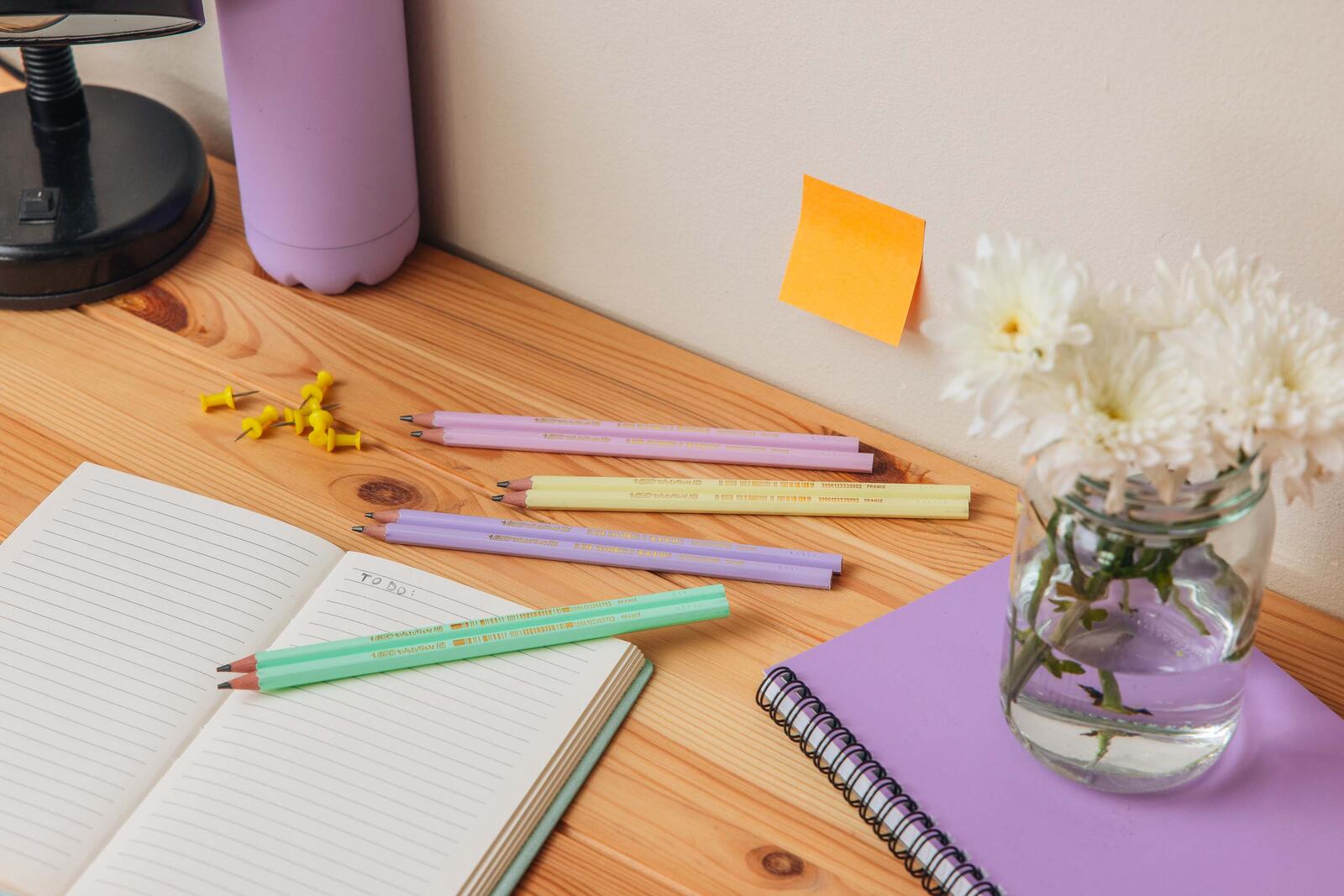 Die BIC® Bleistifte EVOLUTION PASTEL sind klassische Schreibgeräte in einem Set von fünf Stück. Die Bleistifte verfügen über eine sechskantige Form, die ein angenehmes und sicheres Halten ermöglicht. Sie sind sowohl für Rechts- als auch für Linkshänder geeignet, was die Handhabung für alle Nutzergruppen erleichtert. Die Schäfte sind in den Pastellfarben Lila, Grün, Gelb und Rosa gehalten, wobei jeweils zwei Bleistifte in Lila enthalten sind.