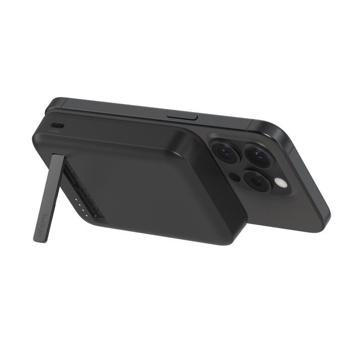 iPhone und andere Qi2-fähige Smartphones lassen sich schnell und sicher kabellos mit unserer magnetischen BoostCharge Pro Powerbank mit Qi2 (15 W), 8K aufladen. Ihre Qi2- und MagSafe-kompatiblen Geräte können unterwegs mühelos mit bis zu 15 W geladen werden. Mithilfe des integrierten Halters können Sie sich sogar während des Ladens Ihres Geräts im perfekten Blickwinkel Videos ansehen, streamen oder Content erstellen.