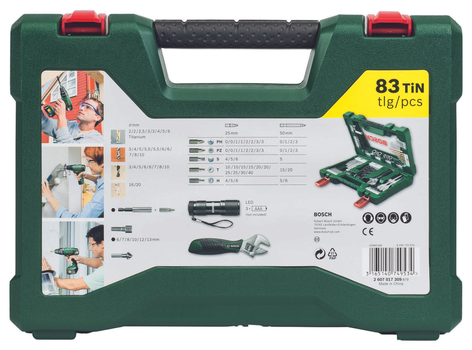 Das BOSCH Bohrer- und Bit-Set V-Line Box 83-teilig ist die ideale Lösung für alle Heimwerker und Profis, die Wert auf Qualität und Vielseitigkeit legen. Dieses umfangreiche Set bietet eine breite Auswahl an Bohrern und Bits, die speziell für verschiedene Materialien entwickelt wurden, darunter Holz, Metall und Stein. Mit insgesamt 83 Teilen ist dieses Set perfekt ausgestattet, um eine Vielzahl von Projekten zu meistern. Die hochwertige Verarbeitung der BOSCH Produkte garantiert eine lange Lebensdauer und höchste Präzision bei der Anwendung. Jedes Teil in der V-Line Box wurde sorgfältig ausgewählt, um dir die besten Ergebnisse zu liefern, egal ob du ein Möbelstück zusammenbaust oder Reparaturen in deinem Zuhause durchführst. Die praktische Aufbewahrungsbox sorgt dafür, dass alles ordentlich verstaut und leicht zugänglich ist, sodass du immer das richtige Werkzeug zur Hand hast. Dank der Materialeignung für Holz, Metall und Stein bist du mit diesem Set für nahezu jede Herausforderung gerüstet. Die verschiedenen Bohrer und Bits ermöglichen es dir, präzise Löcher zu bohren und Schrauben sicher zu setzen, was die Effizienz deiner Arbeiten erheblich steigert. Die V-Line Box von BOSCH ist nicht nur funktional, sondern auch ein stilvolles Zubehör in deiner Werkstatt. Egal, ob du ein erfahrener Handwerker oder ein Hobbybastler bist, das BOSCH Bohrer- und Bit-Set V-Line Box 83-teilig wird deine Erwartungen übertreffen und dir helfen, deine Projekte mit Leichtigkeit und Professionalität zu realisieren. Vertraue auf die Qualität von BOSCH und erlebe, wie einfach und effektiv das Arbeiten mit diesem umfangreichen Set sein kann.Technische Daten