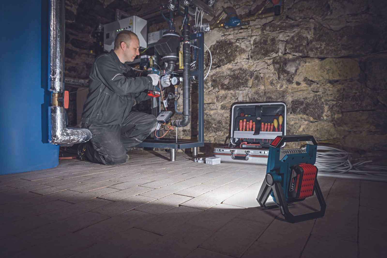 Der Bosch GLI 18V-1900 Baustrahler in blau/schwarz ist die ideale Beleuchtungslösung für den Innen- und Außenbereich. Mit seinem einstellbaren Beleuchtungswinkel und der gummierten Standfläche bietet er maximale Flexibilität und Stabilität. Der integrierte Tragegriff sorgt für eine bequeme Handhabung und ermöglicht einen einfachen Transport. Dieser Baustrahler ist mit einer leistungsstarken LED-Lampe ausgestattet, die ein helles Licht liefert. Die Dimmfunktion ermöglicht es dir, die Helligkeit nach Bedarf anzupassen. Die Lichtfarbe wird vom Hersteller nicht angegeben, aber die Qualität des Lichts ist beeindruckend. Hergestellt aus hochwertigem Kunststoff von BOSCH Professional, überzeugt der Bosch GLI 18V-1900 Baustrahler nicht nur durch seine Robustheit, sondern auch durch seine einfache Handhabung und Langlebigkeit. Der blaue Baustrahler ist sowohl optisch ansprechend als auch funktional und eignet sich perfekt für Baustellen, Werkstätten, den Heimgebrauch und viele andere Anwendungen. Egal ob du gerade einen Raum renovierst, im Freien arbeitest oder einfach mehr Licht benötigst, der Bosch GLI 18V-1900 Baustrahler ist die optimale Wahl, um für eine helle und gut ausgeleuchtete Umgebung zu sorgen. Mit diesem Baustrahler hast du stets die perfekte Beleuchtung im Griff.Technische Daten
