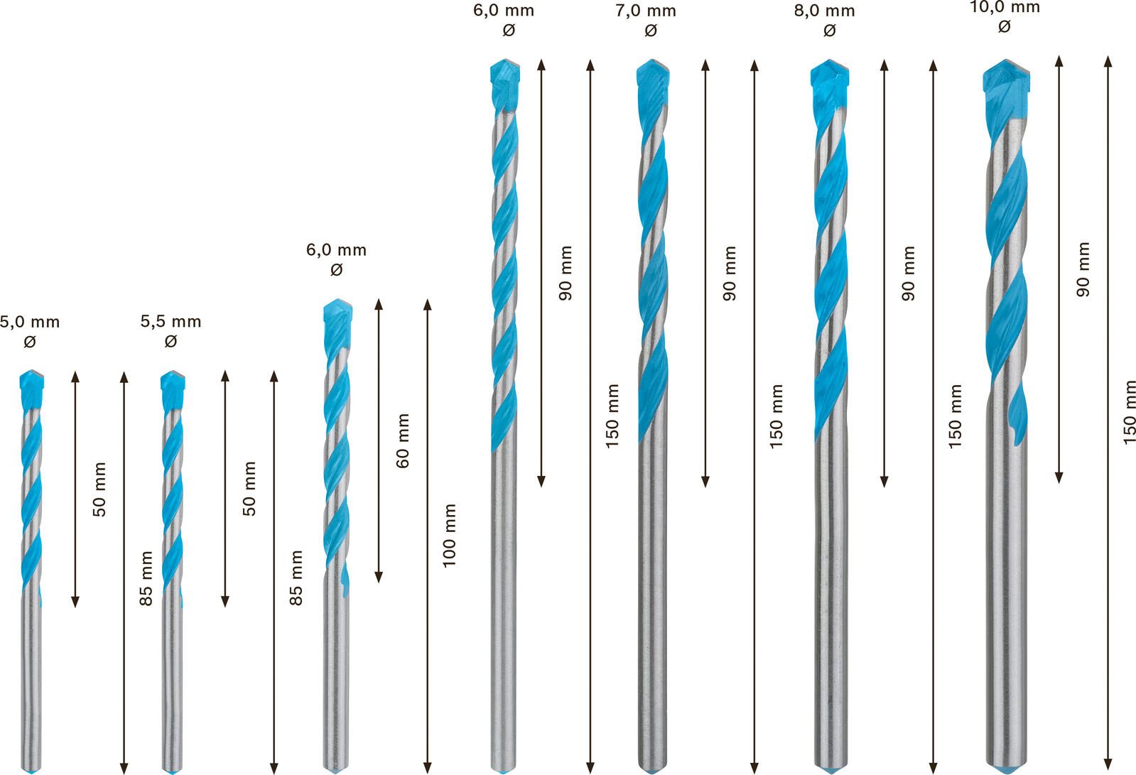 - Materialeignung: Backstein, Beton, Kunststoff, Pressschichtholz, Stahl, Trockenbauwand, Weichgestein, weiche Fliesen, Weichholz