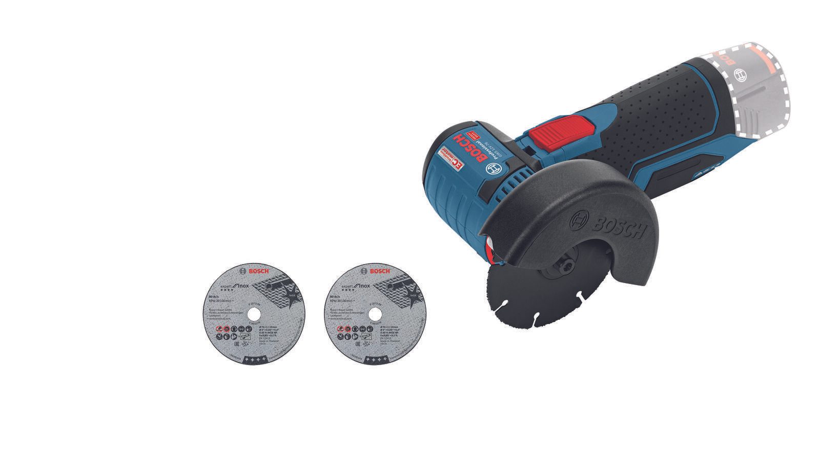 - Lieferung inkl.: 1/2 L-BOXX-Einlage für GWS 12V-76, Schutzhaube, 1x Hartmetall-Trennscheibe Carbide Multiwheel 76 x 10 mm, 2x Inox-Trennscheibe Expert for Inox 76 x 10 mm, Lieferung ohne Akku, ohne Ladegerät