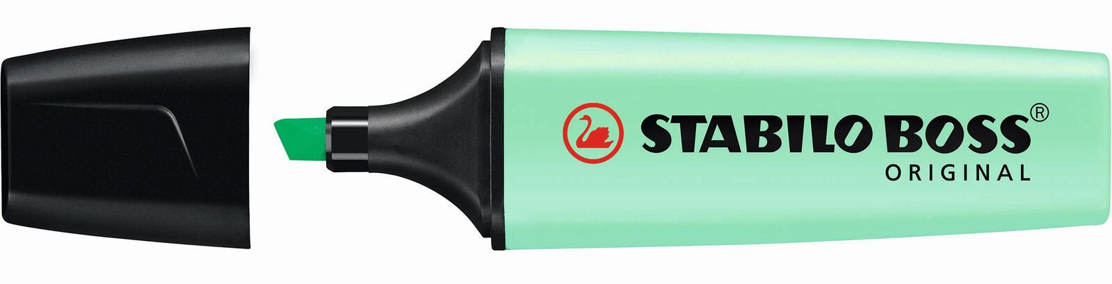 Der STABILO BOSS ORIGINAL Textmarker in einem erfrischenden Hauch von Minzgrün ist der ideale Begleiter für Schule, Studium und Büro. Mit seiner ergonomischen Griffart liegt der Marker angenehm in der Hand und ermöglicht ein müheloses Arbeiten, egal ob du lange Texte oder wichtige Passagen hervorheben möchtest. Die einzigartige Keilspitze bietet eine variable Strichstärke von 2.0 bis 5.0 mm, sodass du sowohl feine Linien als auch breite Markierungen setzen kannst. Dies ist besonders vorteilhaft, wenn du verschiedene Textarten oder -größen markieren möchtest. Der Textmarker ist zudem geruchsarm und damit auch für den Einsatz in geschlossenen Räumen bestens geeignet. Ein weiteres Plus ist die nachfüllbare Funktion, die nicht nur umweltfreundlich ist, sondern auch dafür sorgt, dass du lange Freude an deinem Textmarker hast. Der STABILO BOSS ORIGINAL ist wasserlöslich und schattenfrei kopierbar, was bedeutet, dass du dir keine Sorgen um unschöne Schatten auf Kopien machen musst. Die lichtbeständige Tinte sorgt dafür, dass deine Markierungen auch über längere Zeit hinweg lebendig und klar bleiben. Mit der Schutzkappe ist der Marker bestens gegen das Austrocknen geschützt, sodass du ihn jederzeit griffbereit hast, wenn du ihn benötigst. Der STABILO BOSS ORIGINAL Textmarker in Grün ist nicht nur ein praktisches Schreibwerkzeug, sondern auch ein stilvolles Accessoire, das deine Unterlagen aufwertet. Vertraue auf die Qualität von STABILO und erlebe das Markieren in einer neuen Dimension.Weiterlesen