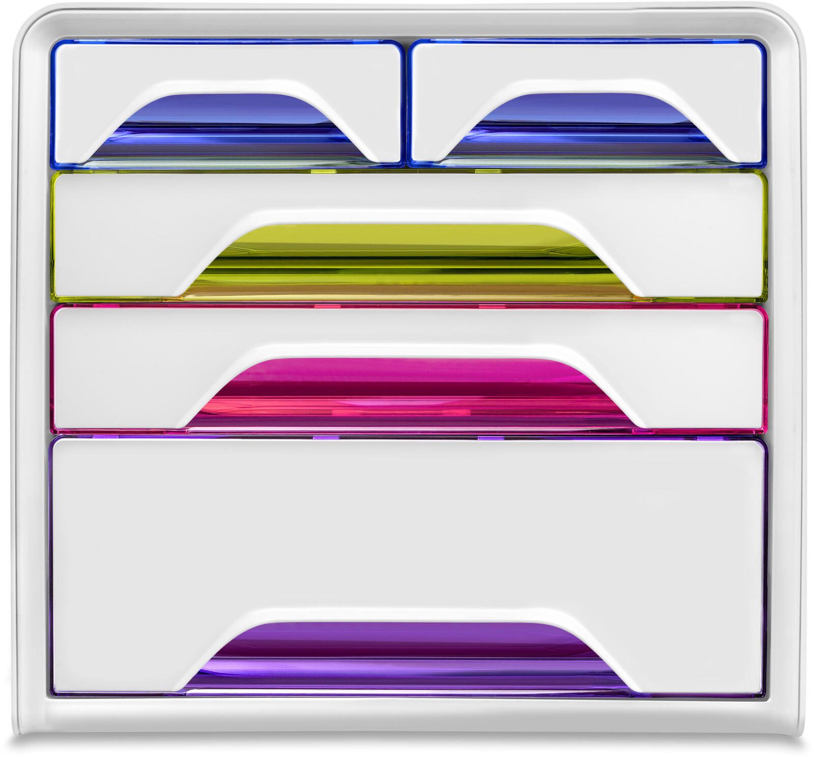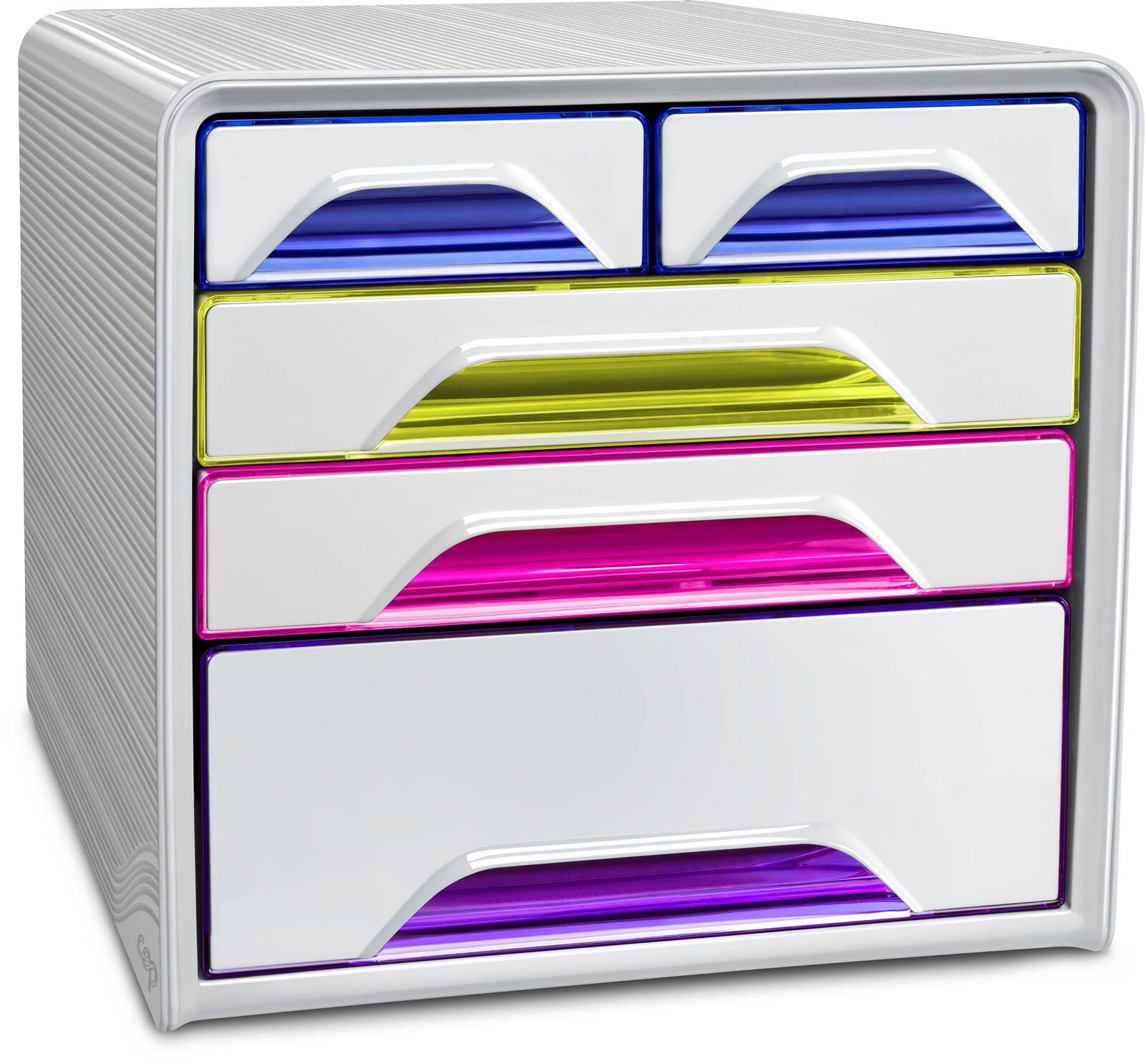 Die fünf Schübe der Box Smoove ws/bunt-tt bieten dir die Möglichkeit, verschiedene Dokumente oder Materialien übersichtlich zu sortieren und griffbereit zu haben. Egal ob zu Hause, im Büro oder im Homeoffice, diese Schubladenboxen erleichtern dir die Organisation und Aufbewahrung deiner Unterlagen.