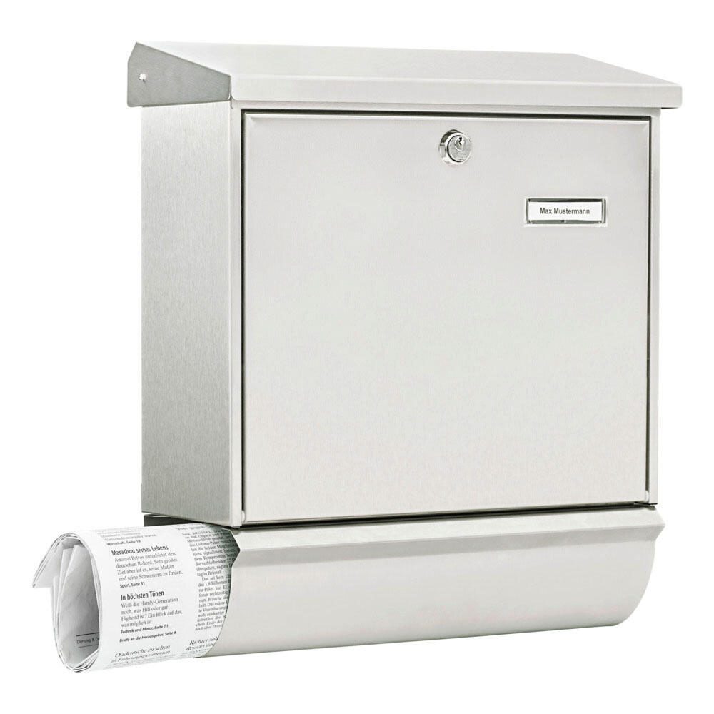 Der BURG WÄCHTER Briefkasten Comfort - Set 32680 in elegantem Silber vereint Funktionalität und ansprechendes Design. Mit seinen kompakten Maßen von 38,0 x 14,8 x 44,0 cm passt dieser Briefkasten ideal an jede Wand und fügt sich harmonisch in dein Zuhause ein. Das hochwertige Material aus Edelstahl sorgt nicht nur für eine ansprechende Optik, sondern garantiert auch Langlebigkeit und Wetterbeständigkeit. Ein besonderes Highlight dieses Modells ist der praktische Einwurfschlitz, der dir das Einwerfen von Briefen und Postkarten erleichtert. Zusätzlich verfügt der Briefkasten über ein integriertes Zeitungsfach, welches dir ermöglicht, auch deine Tageszeitung sicher und ordentlich aufzubewahren. So bleibt dein Eingangsbereich stets aufgeräumt und einladend. Die silberne Farbgebung verleiht dem Briefkasten eine moderne Note und macht ihn zu einem echten Blickfang. Die Montage ist unkompliziert und kann problemlos an der Wand erfolgen, sodass du im Handumdrehen von den Vorteilen dieses praktischen Accessoires profitieren kannst. Der BURG WÄCHTER Briefkasten Comfort - Set 32680 ist nicht nur eine praktische Lösung für die Postzustellung, sondern auch ein stilvolles Element, das deinem Eingangsbereich einen Hauch von Eleganz verleiht. Vertraue auf die Qualität und das durchdachte Design von BURG WÄCHTER, einem renommierten Hersteller, der für seine zuverlässigen Produkte bekannt ist.Technische Daten