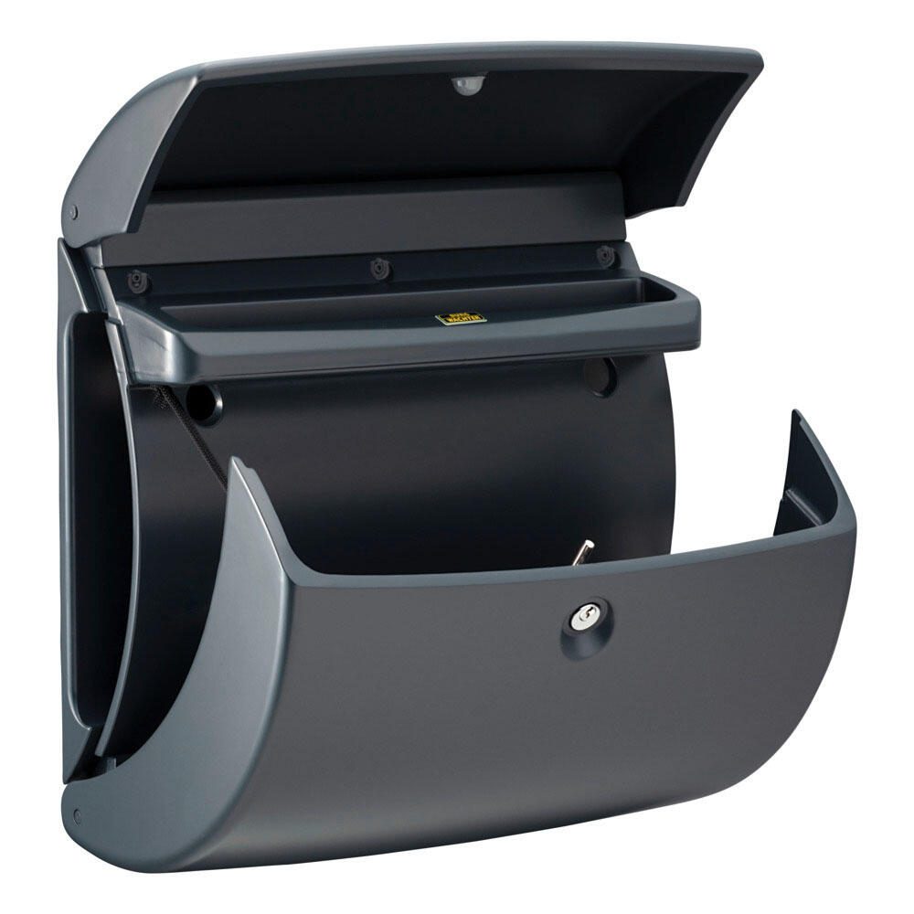 Der BURG WÄCHTER Briefkasten Pearl 35650 in der eleganten Farbe granit vereint modernes Design mit praktischen Funktionen. Mit seinen kompakten Maßen von 38,0 x 17,8 x 40,0 cm passt dieser Briefkasten perfekt an jede Wand und ist somit ideal für den Eingangsbereich deines Hauses oder deiner Wohnung. Dieser Briefkasten ist nicht nur ein stilvolles Accessoire, sondern auch äußerst funktional. Aus robustem Kunststoff gefertigt, bietet er eine hohe Wetterbeständigkeit und Langlebigkeit. Der integrierte Einwurfschlitz ermöglicht eine einfache und sichere Zustellung deiner Post, während das praktische Zeitungsfach dafür sorgt, dass auch deine Zeitungen ordentlich und geschützt aufbewahrt werden. So bleibt alles in einem gepflegten Zustand und du hast stets einen aufgeräumten Eingangsbereich. Die Serie Pearl von BURG WÄCHTER steht für Qualität und durchdachtes Design. Der Farbton granit verleiht dem Briefkasten eine zeitlose Eleganz, die sich harmonisch in jede Umgebung einfügt. Egal, ob du einen modernen oder klassischen Stil bevorzugst, dieser Briefkasten wird zum Blickfang an deiner Wand. Die Montage des Briefkastens gestaltet sich unkompliziert und schnell, sodass du im Handumdrehen von den Vorteilen profitieren kannst. Du kannst dich darauf verlassen, dass deine Post jederzeit sicher und geschützt ist. Der BURG WÄCHTER Briefkasten Pearl 35650 ist die perfekte Wahl für alle, die Wert auf Qualität, Funktionalität und ansprechendes Design legen.