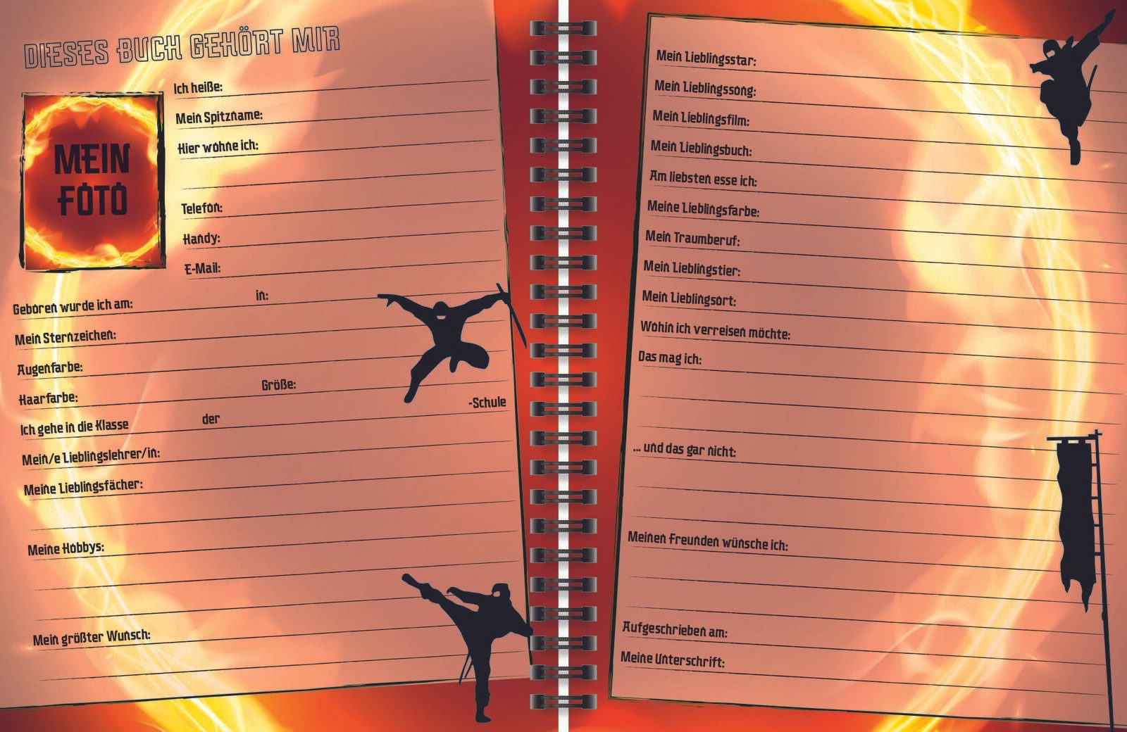 Die Serie Ninja Power verspricht abenteuerliche Erlebnisse und geheime Nachrichten, die in diesem Freundebuch sicher aufbewahrt werden können. Das papier ist in einem auffälligen Orange gehalten und bietet einen schönen Kontrast zu den schwarzen und blauen Farben des Einbands.