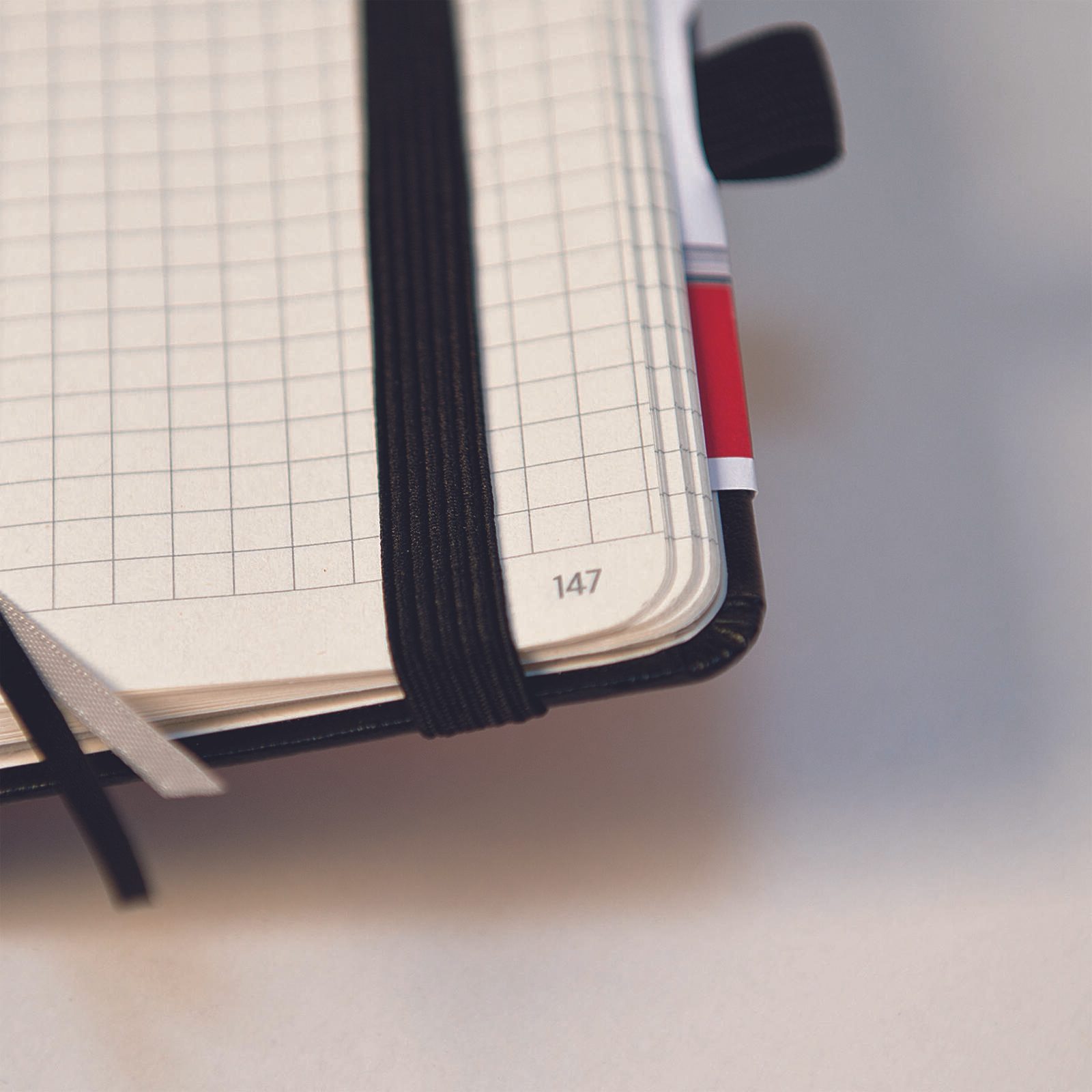 Das Notizbuch verfügt über einen praktischen Gummizug-Verschluss, der deine Aufzeichnungen sicher zusammenhält und dafür sorgt, dass nichts verloren geht. Dank des Formats im ca. DIN A5-Format passt das Notizbuch mühelos in deine Tasche, sodass du es jederzeit griffbereit hast.