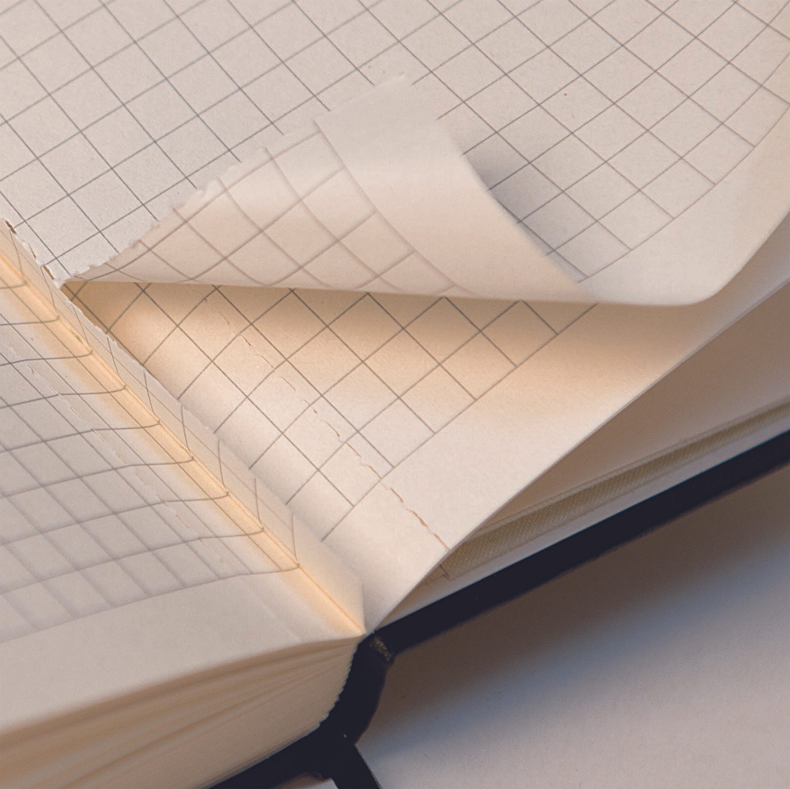 Die karierte Lineatur des Papiers ermöglicht es dir, präzise zu schreiben, zu zeichnen oder Skizzen anzufertigen. Das creme-farbene Papier ohne Rand bietet eine angenehme Schreiberfahrung, egal ob du mit Bleistift oder Tinte arbeitest.