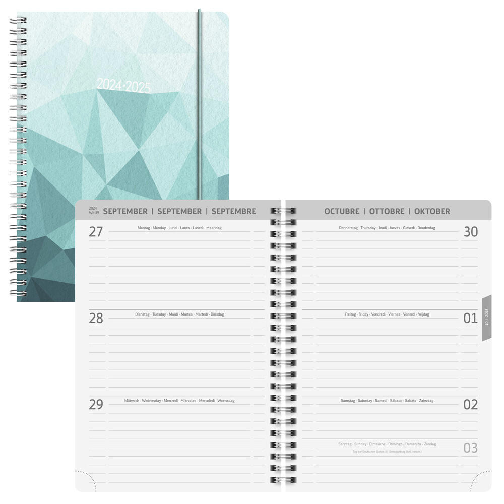 Die Serie Ice Vector von BRUNNEN steht für hochwertige Verarbeitung und Funktionalität. Durch die kompakten Maße von 14,8 x 21,0 cm passt der Kalender mühelos in jede Tasche, sodass du ihn überallhin mitnehmen kannst.