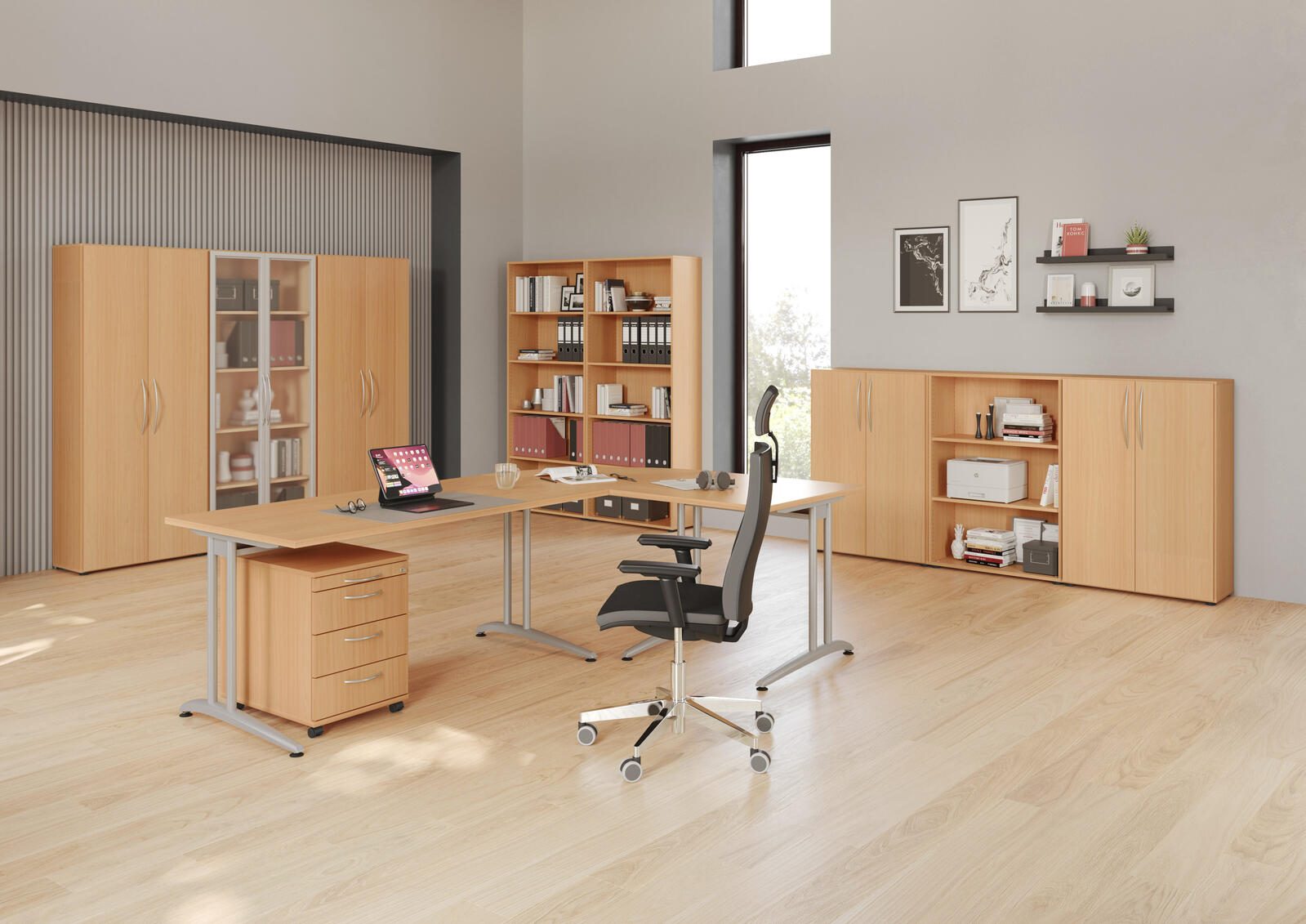 Ob für das professionelle Büro oder den kreativen Arbeitsplatz zu Hause, der HAMMERBACHER Schreibtisch VBS16/6/S buche passt sich optimal an Ihre Bedürfnisse an. Die schlichte, aber moderne Ästhetik des Schreibtisches fügt sich harmonisch in verschiedene Einrichtungsstile ein und bietet Ihnen einen inspirierenden Raum zum Arbeiten oder Lernen. Genießen Sie die Vorteile eines durchdachten Designs, das sowohl Komfort als auch Stil vereint.