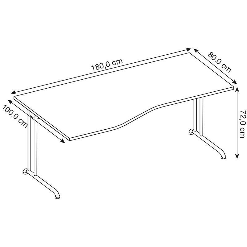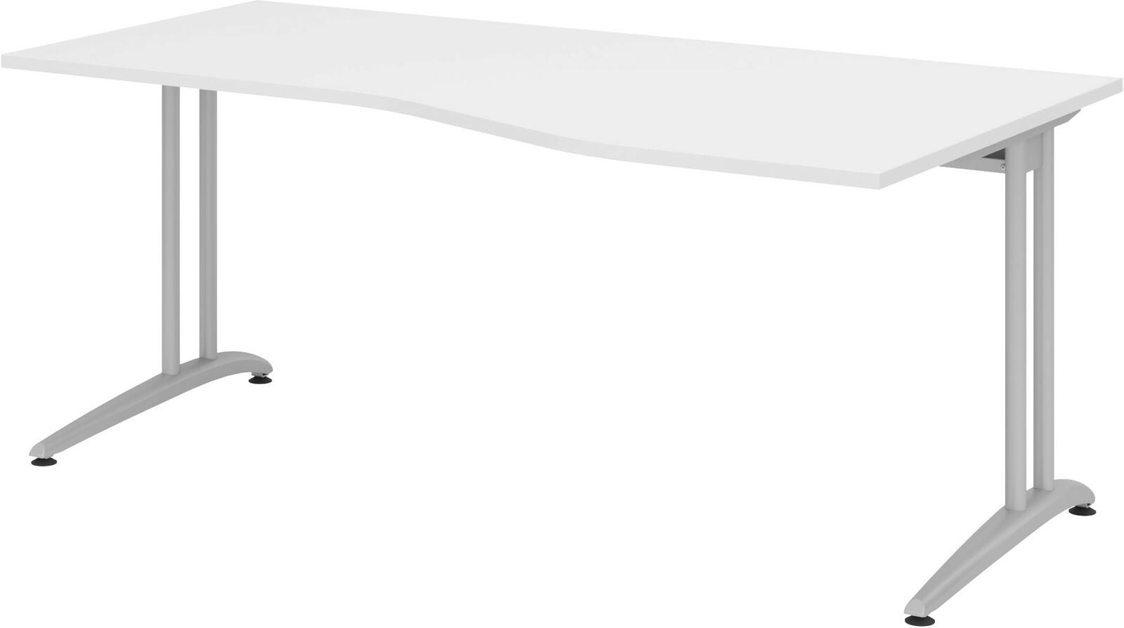 Der HAMMERBACHER Schreibtisch VBS18/W/S in elegantem Weiß ist die perfekte Lösung für Ihr Homeoffice oder Ihr Arbeitszimmer. Mit einer stabilen Tischplatte aus Spanplatte und einem robusten Stahlgestell kombiniert dieser Schreibtisch Funktionalität und modernes Design. Die schlichte, aber ansprechende Farbgebung in Weiß sorgt dafür, dass sich der Tisch harmonisch in jede Raumgestaltung einfügt und gleichzeitig eine helle, freundliche Atmosphäre schafft. Mit einer Höhe von 72 cm bietet der Schreibtisch optimalen Komfort für längeres Arbeiten. Das innovative C-Fuß-Gestell sorgt nicht nur für Stabilität, sondern ermöglicht auch eine flexible Nutzung des Raumes, da es eine ungehinderte Beinfreiheit bietet. Der Schreibtisch kommt ganz ohne Fächer oder Schübe aus, was ihn besonders pflegeleicht macht und Ihnen die Freiheit gibt, Ihre Arbeitsmaterialien flexibel zu gestalten. Die Verwendung von hochwertigen Materialien wie Spanplatte für die Tischplatte und Stahl für das Gestell garantiert eine hohe Langlebigkeit und Stabilität. Der Farbton Silber des Gestells ergänzt das weiße Design und verleiht dem Schreibtisch einen modernen Touch. Die trapezförmige Form des Tischs sorgt zudem für eine dynamische Optik und hebt sich von herkömmlichen Schreibtischen ab. Der HAMMERBACHER Schreibtisch VBS18/W/S ist nicht nur ein praktisches Möbelstück, sondern auch ein stilvolles Element in Ihrem Arbeitsbereich. Er bietet ausreichend Platz für Ihren Laptop, Ihre Unterlagen und persönliche Gegenstände, während er gleichzeitig einen klaren und aufgeräumten Eindruck hinterlässt. Dieses Möbelstück ist ideal für alle, die Wert auf ein funktionales und ästhetisches Arbeitsumfeld legen.Technische Daten