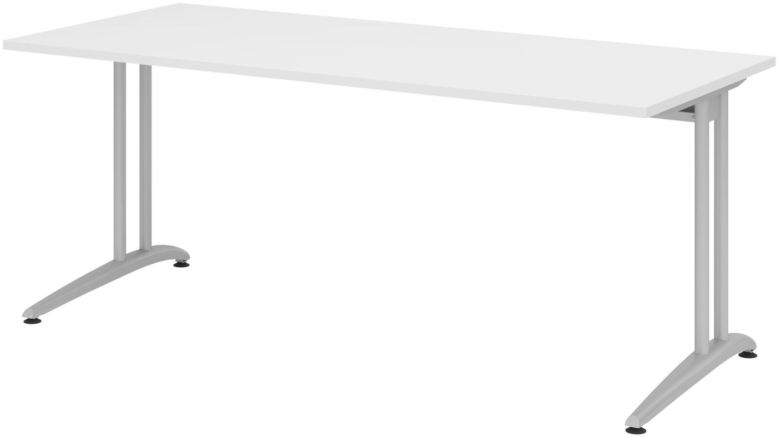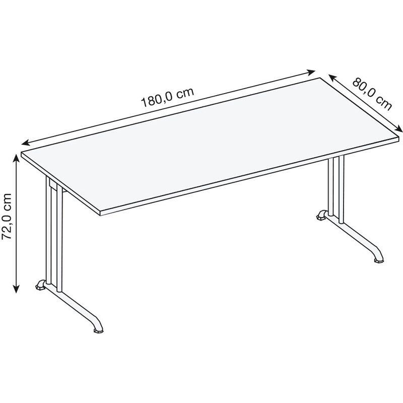 Der HAMMERBACHER Schreibtisch VBS19/W/S in elegantem Weiß ist die perfekte Wahl für Ihr Home Office oder Ihren Arbeitsplatz. Mit einer großzügigen Tischplatte aus robuster Spanplatte bietet dieser Schreibtisch ausreichend Platz für Ihren Laptop, wichtige Unterlagen und Büromaterialien. Das stilvolle C-Fuß-Gestell aus hochwertigem Stahl in Silber verleiht dem Tisch nicht nur Stabilität, sondern auch eine moderne Ästhetik, die sich nahtlos in jedes Raumdesign einfügt. Die Abmessungen von 180 cm in der Breite, 80 cm in der Tiefe und 72 cm in der Höhe machen diesen Schreibtisch zu einem komfortablen Arbeitsplatz, der sowohl für kreative Tätigkeiten als auch für konzentriertes Arbeiten bestens geeignet ist. Die klare, weiße Farbgebung sorgt dafür, dass der Schreibtisch hell und einladend wirkt, während das silberne Gestell einen ansprechenden Kontrast bietet. Ein weiterer Vorteil des HAMMERBACHER Schreibtischs ist die einfache Pflege der Oberfläche, die eine unkomplizierte Reinigung ermöglicht und somit den Alltag erleichtert. Durch das schlichte Design ohne zusätzliche Fächer oder Schübe können Sie den Tisch ganz nach Ihren Bedürfnissen gestalten und anpassen. Die Kombination aus Funktionalität und ansprechendem Design macht den HAMMERBACHER Schreibtisch VBS19/W/S zu einer hervorragenden Ergänzung für jedes Büro oder Arbeitszimmer. Er bietet nicht nur einen praktischen Arbeitsplatz, sondern trägt auch zu einer angenehmen und produktiven Atmosphäre bei.Technische Daten