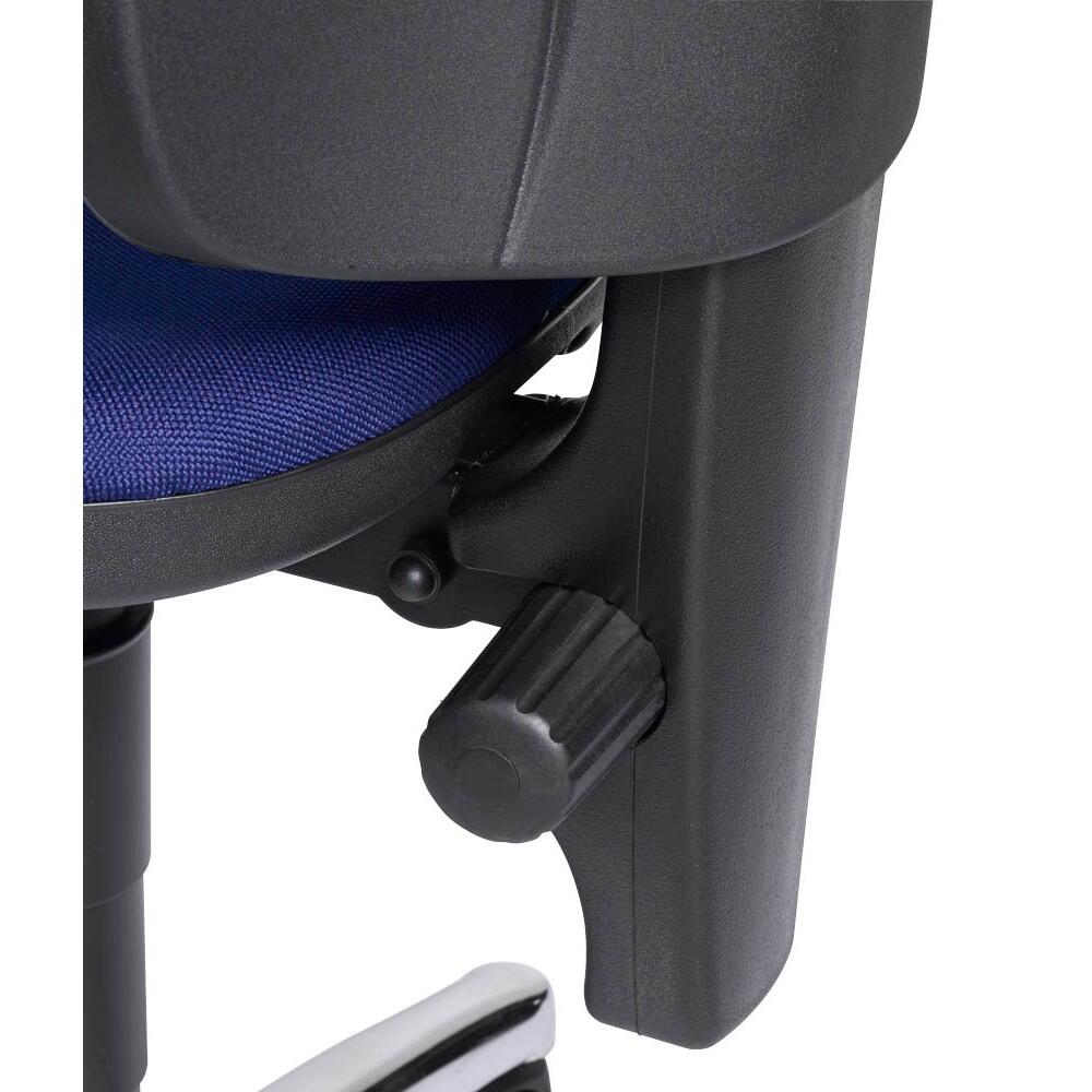 Die feste Armlehnenausführung sorgt für zusätzliche Stabilität und Unterstützung während langer Bürostunden. Die Doppelrollen für Teppichböden ermöglichen eine einfache und reibungslose Bewegung, während das Stahl-Fußkreuz in Chrom-Optik dem Stuhl eine moderne und robuste Note verleiht.