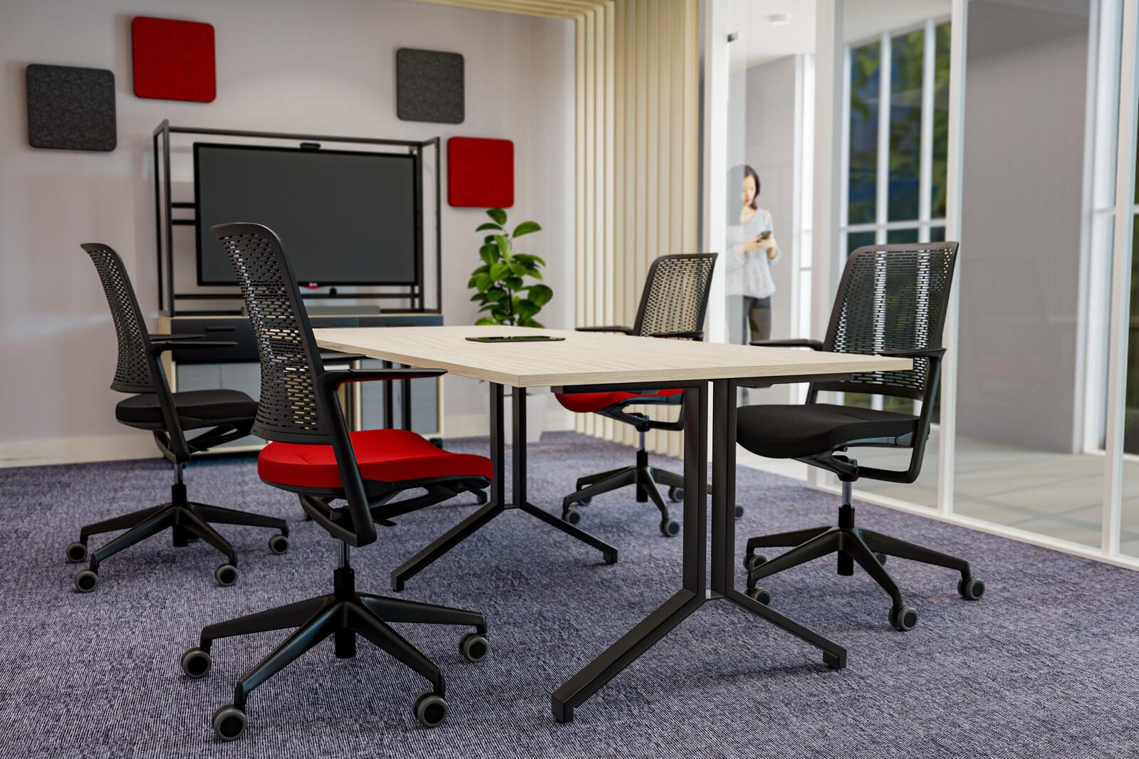 Die Doppelrollen dieses Bürostuhls eignen sich sowohl für harte Böden als auch für Teppichböden und ermöglichen eine mühelose Bewegung im Raum. Die Synchron-Mechanik gewährleistet eine ergonomische Sitzhaltung und macht den Stuhl ideal für eine empfohlene Sitzdauer von bis zu 8 Stunden.