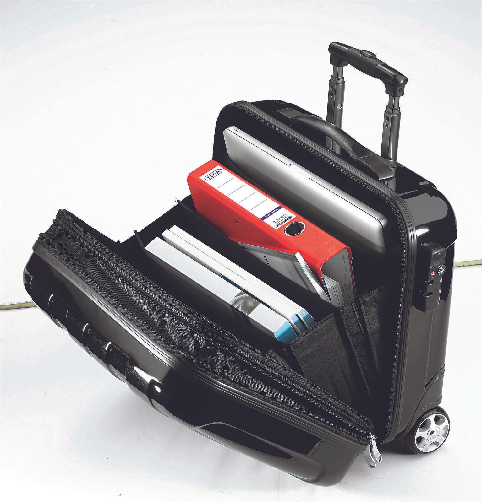 Der JSA Laptop-Trolley ist die ideale Lösung für alle, die ihren Laptop sicher und stilvoll transportieren möchten. Mit einem eleganten und modernen Design in klassischem Schwarz bietet dieser Trolley nicht nur eine ansprechende Optik, sondern auch praktische Funktionen, die den Alltag erleichtern. Die Ausführung des Trolleys umfasst eine Dehnfalte, die dir ermöglicht, zusätzlichen Stauraum zu schaffen, wenn du ihn benötigst. Die gummierten Leichtlaufrollen sorgen dafür, dass der Trolley mühelos über verschiedene Untergründe gleitet, wodurch du auch bei längeren Reisen stets komfortabel unterwegs bist. Mit Außenmaßen von 43,0 x 21,0 x 40,0 cm ist der Trolley kompakt genug, um ihn problemlos in öffentlichen Verkehrsmitteln oder im Auto unterzubringen. Der JSA Laptop-Trolley ist speziell für Notebooks bis zu 43,2 cm (17 Zoll) geeignet. Das herausnehmbare Laptopfach schützt dein Gerät vor Stößen und Kratzern, während das herausnehmbare Fächerdokumentenfach ausreichend Platz für wichtige Unterlagen bietet. Zusätzlich verfügt der Trolley über ein Reißverschlussfach und zwei Einsteckfächer, die dir helfen, deine Utensilien organisiert und griffbereit zu halten. Der Packgurt sorgt dafür, dass alles an seinem Platz bleibt, egal wie turbulent die Reise auch sein mag. Hergestellt aus einem hochwertigen Polycarbonat / ABS-Materialmix, überzeugt der Trolley durch seine Robustheit und Langlebigkeit. Dieser Business-Trolley ist nicht nur funktional, sondern auch ein stilvolles Accessoire für jeden professionellen Auftritt. Wenn du auf der Suche nach einem zuverlässigen Begleiter für deinen Laptop bist, ist der JSA Laptop-Trolley die perfekte Wahl, um deine technischen Geräte sicher und komfortabel zu transportieren.Technische Daten