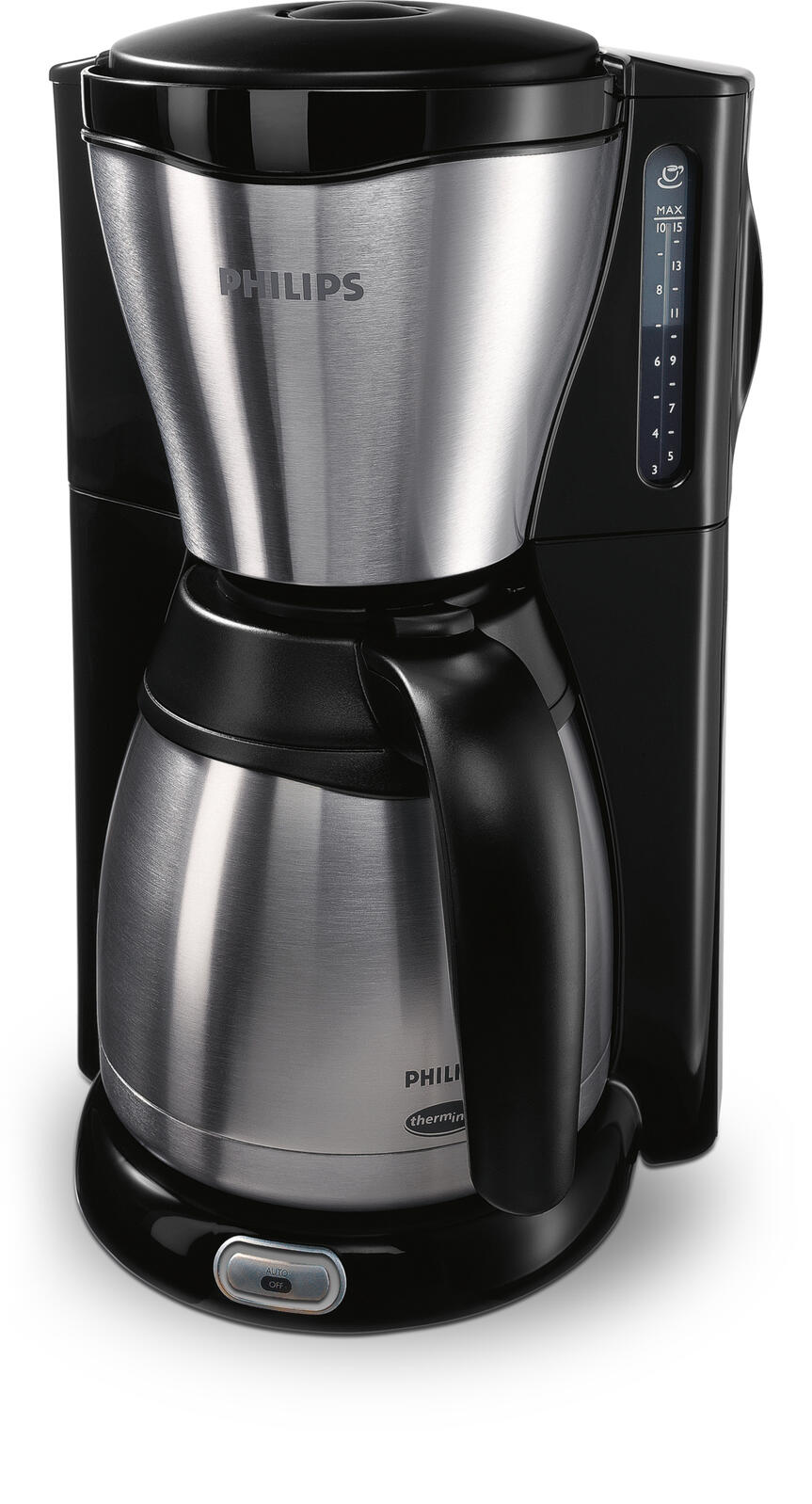 - Nach der Zubereitung des Kaffees schaltet sich die Kaffeemaschine zur Sicherheit und um Energie zu sparen automatisch ab. Die Thermoskanne sorgt dafür, dass der Kaffee heiß bleibt.