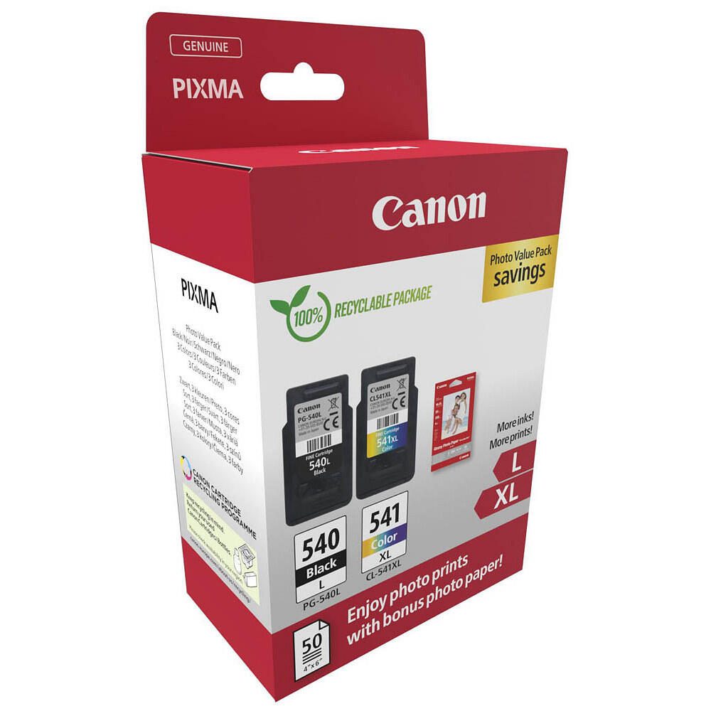 Canon Original PG-540L + CL-541XL Druckerpatronen Valuepack - 1 x schwarz / 1 x farbig + 50 Blatt Fotopapier (5224B012)