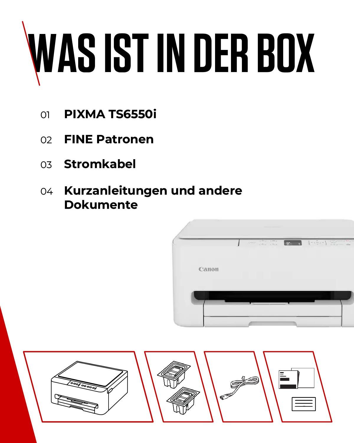 Canon PIXMA TS6550i Tintenstrahl-Multifunktionsgerät (Weiß) A4, 3in1, Drucker, Scanner, Kopierer, USB, WLAN, Duplex, OLED Display
