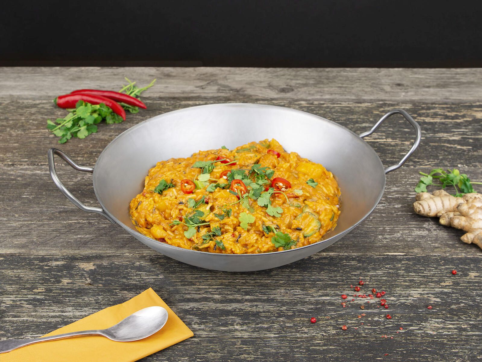 Die chg WOK Pfanne mit einem Durchmesser von 30,5 cm und einem Fassungsvermögen von 3,4 l ist die ideale Ergänzung für deine Küche. Mit ihrem eleganten silbernen Design bringt sie nicht nur Stil, sondern auch Funktionalität in dein Kocherlebnis. Hergestellt aus hochwertigem Eisen bietet diese Pfanne eine hervorragende Wärmeleitfähigkeit, wodurch deine Speisen gleichmäßig gegart werden. Der spezielle Durchmesser des Bodens von 14,0 cm sorgt dafür, dass die Pfanne auch auf kleineren Kochfeldern stabil steht und eine optimale Hitzeverteilung gewährleistet ist. Die robuste Bauweise aus Eisen ermöglicht es dir, auch bei hohen Temperaturen zu braten, zu dünsten oder zu schmoren, ohne dass die Pfanne ihre Form oder Funktionalität verliert. Das großzügige Fassungsvermögen von 3,4 l ist perfekt für die Zubereitung von großen Portionen asiatischer Gerichte, Gemüsepfannen oder auch für das Anbraten von Fleisch. Der WOK ist nicht nur vielseitig einsetzbar, sondern auch einfach zu reinigen, was dir wertvolle Zeit in der Küche spart. Dank der widerstandsfähigen Oberfläche ist die chg WOK Pfanne besonders langlebig und hält auch intensiver Nutzung stand. Sie eignet sich hervorragend für alle Herdarten, einschließlich Induktion, und ist somit ein unverzichtbares Küchenutensil für jeden Kochliebhaber. Vertraue auf die Qualität von chg und genieße das Kochen mit dieser stilvollen und praktischen WOK Pfanne.Technische Daten