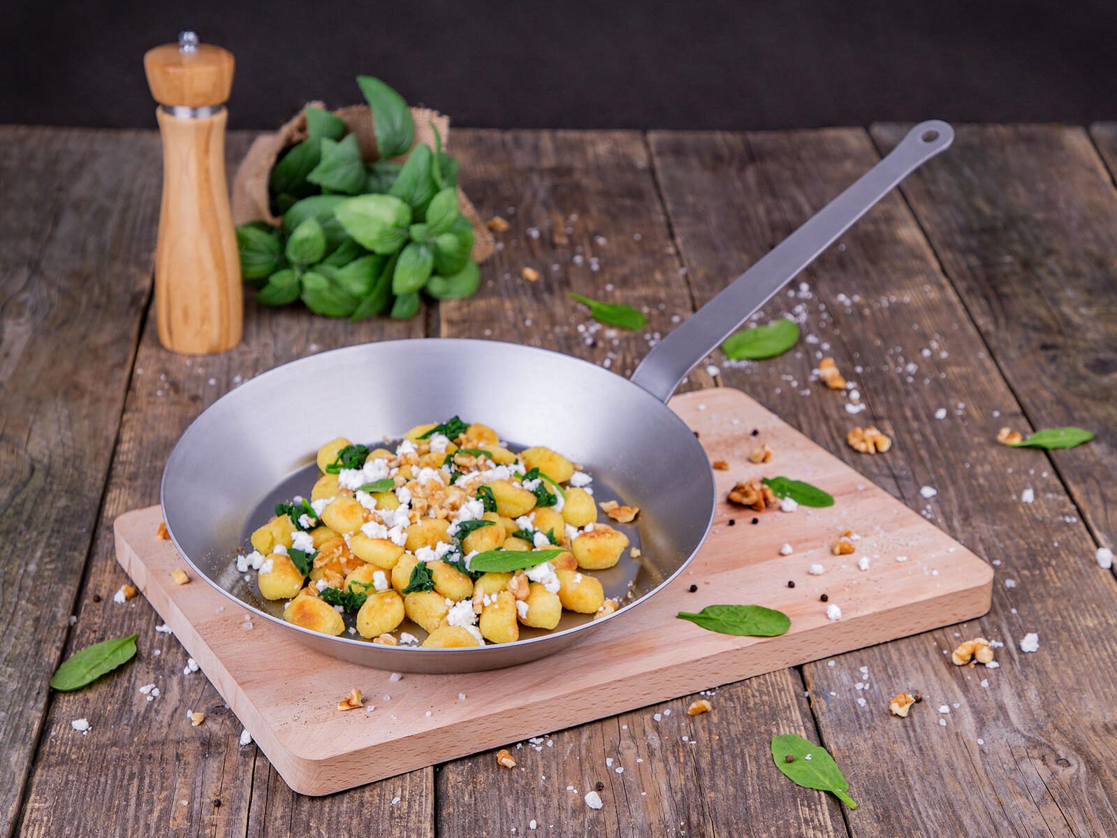 Die chg Profi Pfanne mit einem Durchmesser von 24 cm und einem Fassungsvermögen von 1,2 l ist der ideale Begleiter für deine Kochabenteuer. Hergestellt aus hochwertigem Eisen, bietet diese Pfanne nicht nur eine ansprechende silberne Farbe, sondern auch hervorragende Wärmeleitfähigkeit, die für gleichmäßiges Garen sorgt. Das robuste Material ermöglicht eine hohe Temperaturbeständigkeit und macht die Pfanne perfekt für das Anbraten von Fleisch, das Zubereiten von Gemüse oder das Braten von Eiern. Ein besonderes Merkmal der chg Profi Pfanne ist ihre vielseitige Einsetzbarkeit. Ob auf dem Herd oder im Ofen, sie bewältigt jede Herausforderung in der Küche mit Bravour. Die pflegeleichte Oberfläche sorgt dafür, dass du nach dem Kochen schnell wieder Platz auf deiner Arbeitsfläche hast, da sich Speisereste leicht entfernen lassen. Zudem ermöglicht das durchdachte Design eine ergonomische Handhabung, sodass du auch bei längeren Kochsessions stets die Kontrolle behältst. Die chg Profi Pfanne ist nicht nur funktional, sondern auch ästhetisch ansprechend. Ihr silberner Farbton fügt sich harmonisch in jede Kücheneinrichtung ein und bringt einen Hauch von Professionalität in deine Kochroutine. Dank ihrer hochwertigen Verarbeitung ist sie eine langlebige Investition, die dich über viele Jahre hinweg begleiten wird. Egal, ob du ein erfahrener Koch oder ein Hobbykoch bist, die chg Profi Pfanne wird schnell zu einem unverzichtbaren Utensil in deiner Küche. Sie vereint Qualität, Funktionalität und ansprechendes Design, sodass du mit Freude und Leichtigkeit deine Lieblingsgerichte zubereiten kannst.Technische Daten