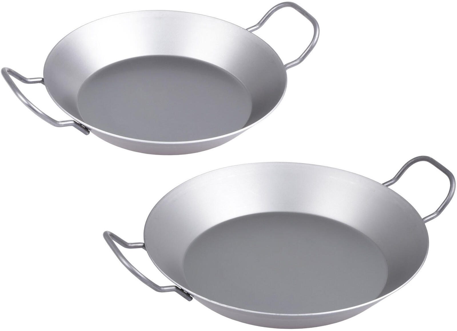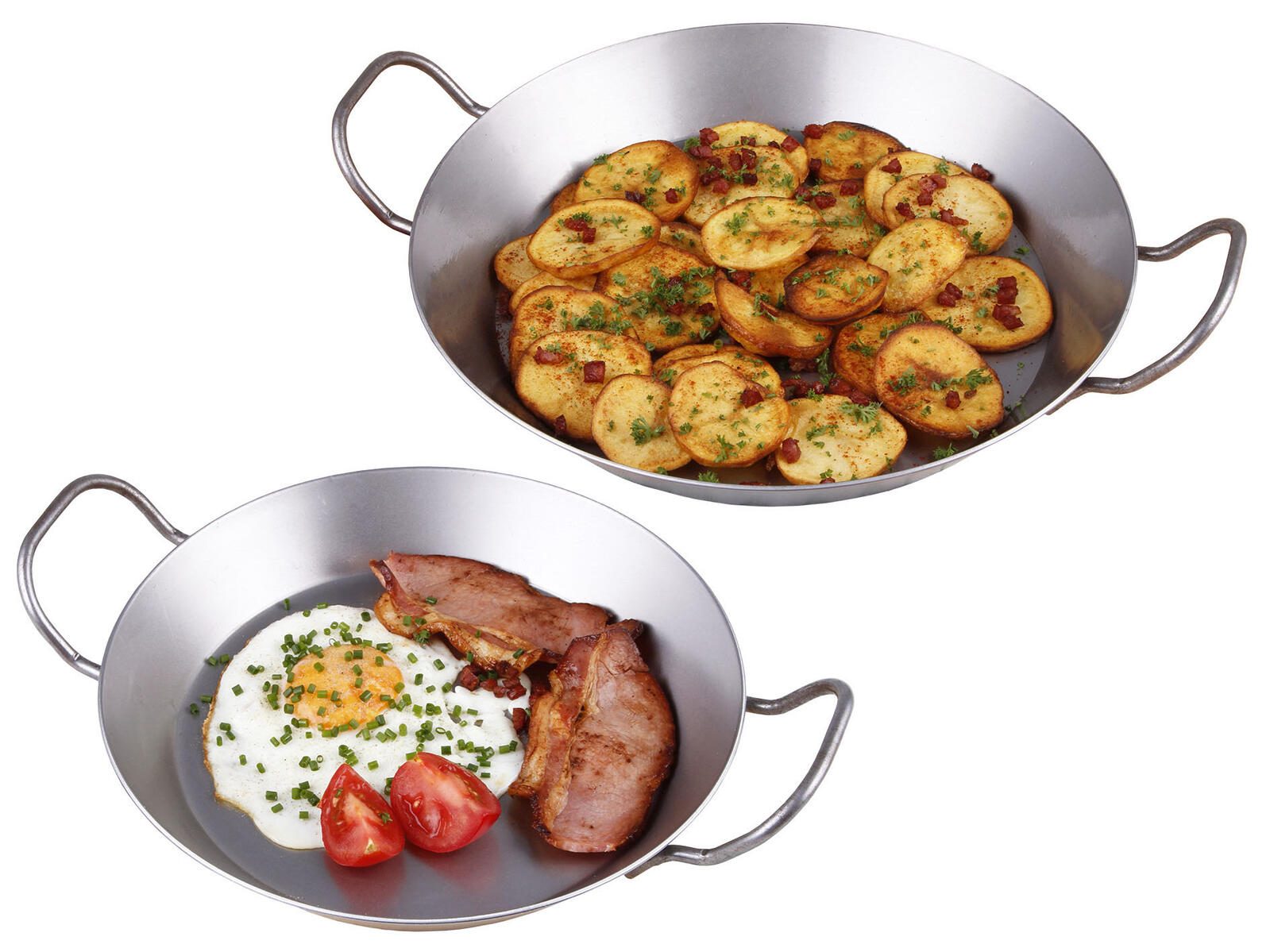 Das chg Pfannen-Set 1,2 + 2,0 l in elegantem Silber vereint Funktionalität und ansprechendes Design. Hergestellt aus hochwertigem Eisen, bietet dieses Set eine hervorragende Wärmeleitung, die für gleichmäßiges Garen sorgt. Die beiden Pfannen mit einem Fassungsvermögen von 1,2 und 2,0 Litern sind ideal für verschiedene Kochbedürfnisse, sei es für das Zubereiten von kleinen Beilagen oder größeren Hauptgerichten. Die silberne Farbgebung verleiht deiner Küche einen modernen Touch und passt zu jeder Kücheneinrichtung. Mit diesem Pfannen-Set bist du bestens ausgestattet, egal ob du auf einem Induktionskochfeld, Gasherd, Elektroherd, Glaskeramikkochfeld oder Halogenkochfeld kochst. Die Vielseitigkeit der Pfannen ermöglicht es dir, eine Vielzahl von Gerichten zuzubereiten, von schmackhaften Bratlingen bis hin zu köstlichen Saucen. Dank der robusten Bauweise aus Eisen sind die Pfannen nicht nur langlebig, sondern auch für den Einsatz im Backofen geeignet. So kannst du deine Speisen direkt nach dem Anbraten im Ofen weitergaren, ohne die Pfanne wechseln zu müssen. Dies spart Zeit und erleichtert die Zubereitung komplexer Gerichte. Das chg Eisenpfannen-Set ist die perfekte Wahl für Kochliebhaber, die Wert auf Qualität und Funktionalität legen. Mit diesem Set wird das Kochen zum Vergnügen und du kannst dich auf die Zubereitung deiner Lieblingsgerichte konzentrieren.Technische Daten