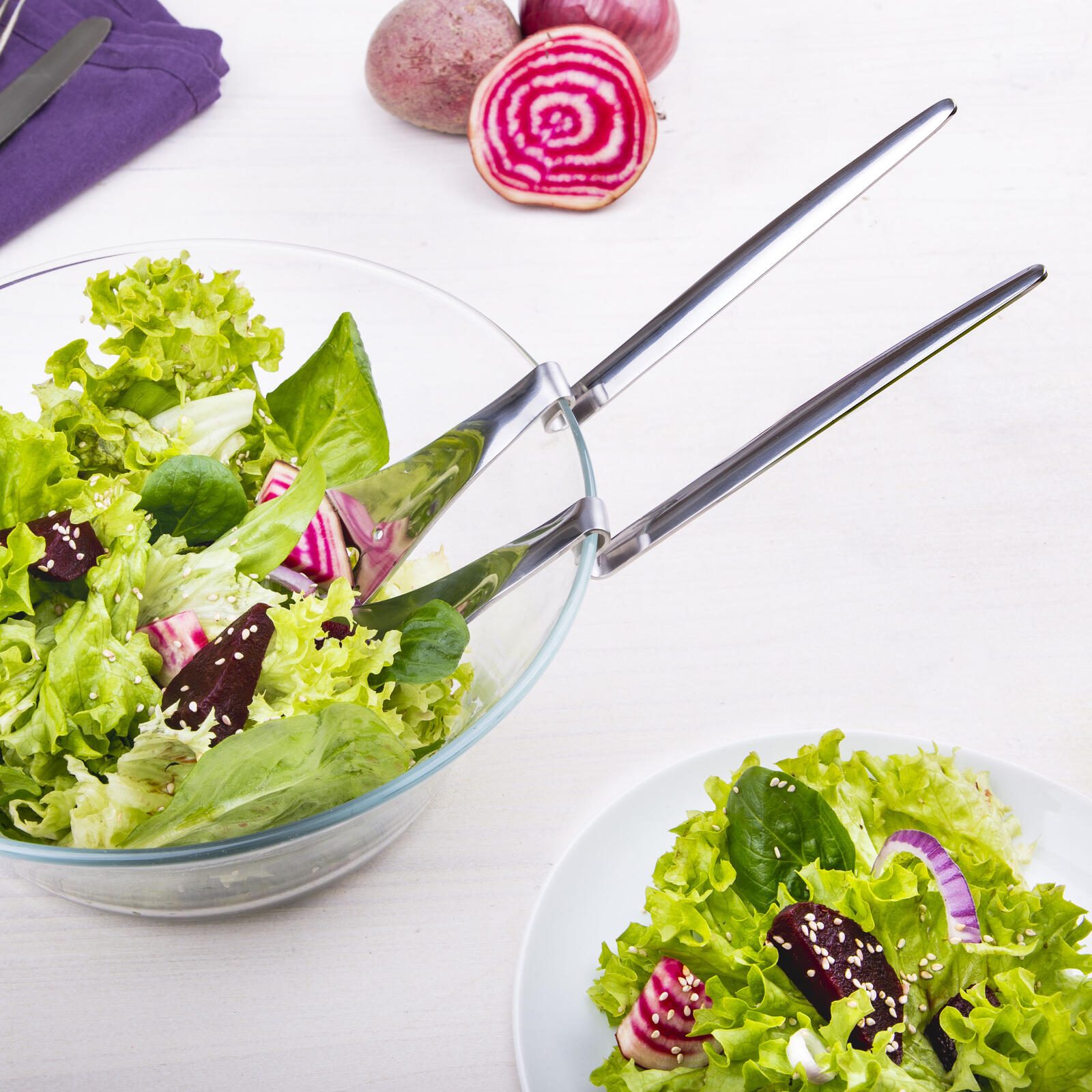 Das hochwertige Material, aus dem dieses Salatbesteck gefertigt ist, ist langlebig und sorgt für eine elegante Optik. Der silberne Farbton verleiht deinem gedeckten Tisch eine edle Note und lässt sich wunderbar mit verschiedenem Geschirr kombinieren.