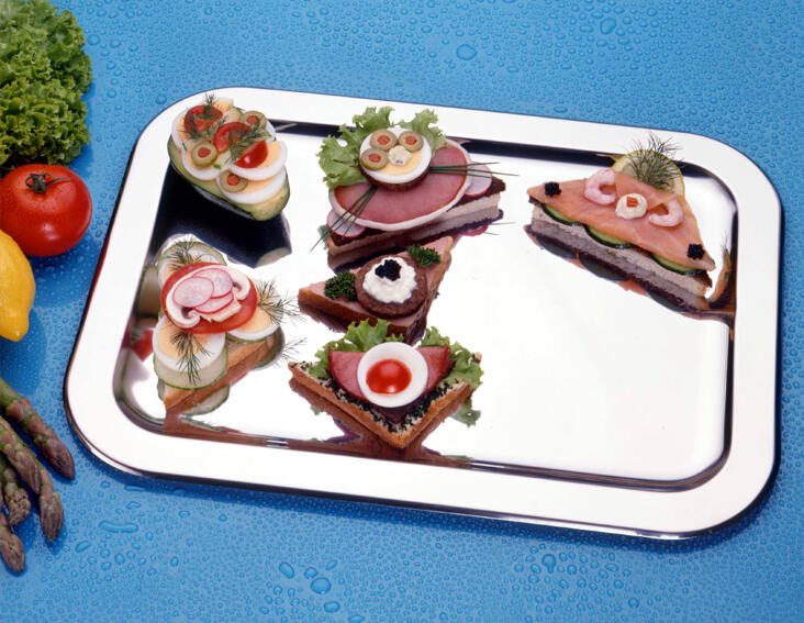 Die chg Servierplatten in elegantem Silber sind die perfekte Ergänzung für jede Tischdekoration und bringen einen Hauch von Luxus in dein Zuhause. Mit einem großzügigen Maß von 48,5 x 37,5 cm bieten sie ausreichend Platz, um deine kulinarischen Köstlichkeiten stilvoll zu präsentieren. Diese Servierplatten sind aus hochwertigem, rostfreiem Edelstahl gefertigt, was nicht nur für eine ansprechende Optik sorgt, sondern auch für eine hohe Langlebigkeit und Widerstandsfähigkeit. Die silberne Farbe der chg Servierplatten verleiht jedem Anlass einen festlichen Charakter, sei es bei einem Dinner mit Freunden, einem Familienfest oder einem besonderen Feiertag. Der rostfreie Edelstahl sorgt dafür, dass die Platten auch nach mehrmaligem Gebrauch ihren Glanz behalten und leicht zu reinigen sind. Du kannst sie einfach in die Spülmaschine geben oder mit einem feuchten Tuch abwischen, was dir wertvolle Zeit spart. Die chg Servierplatten sind nicht nur funktional, sondern auch ein echter Blickfang. Ihre schlichte Eleganz passt zu jedem Geschirr und jedem Dekorationsstil, sodass sie vielseitig einsetzbar sind. Ob du kalte Vorspeisen, warme Hauptgerichte oder verführerische Desserts servierst, diese Platten setzen deine Speisen perfekt in Szene. Mit der chg Servierplatte silber entscheidest du dich für ein Produkt, das sowohl durch seine Qualität als auch durch sein ansprechendes Design überzeugt. Mache deine nächste Veranstaltung zu einem unvergesslichen Erlebnis und genieße die bewundernden Blicke deiner Gäste, während sie sich an deinen liebevoll angerichteten Speisen erfreuen.Technische Daten