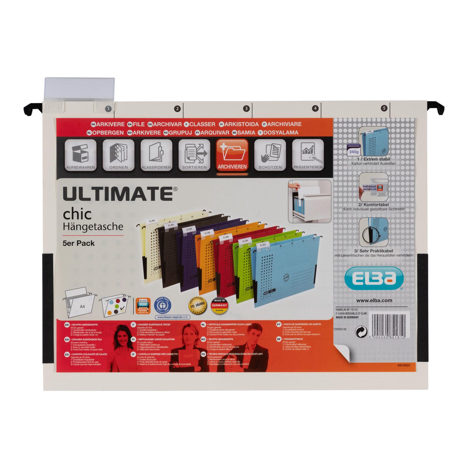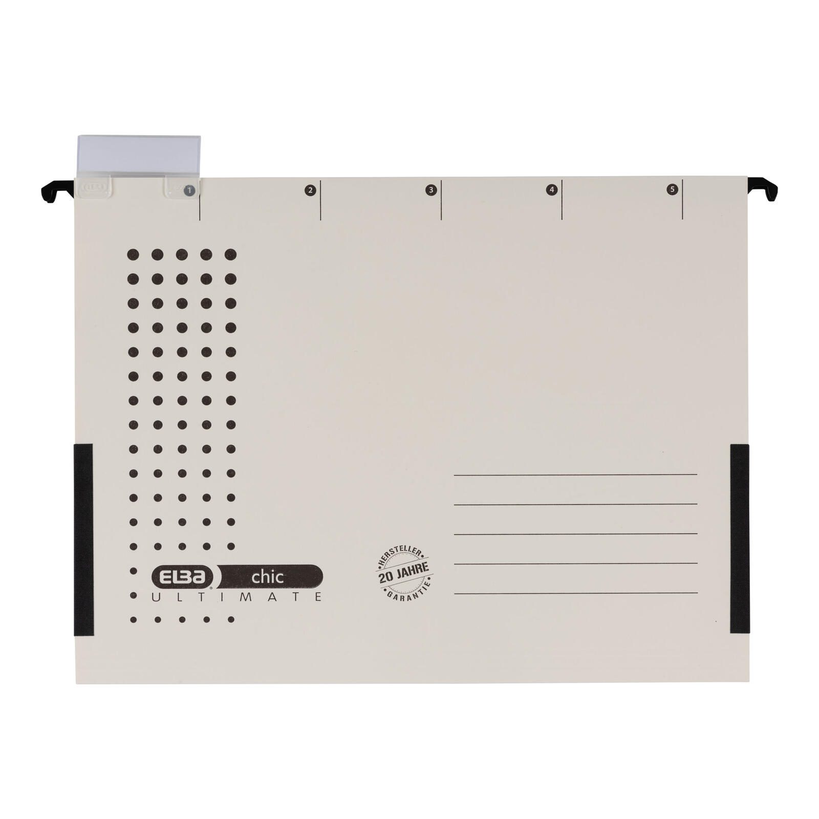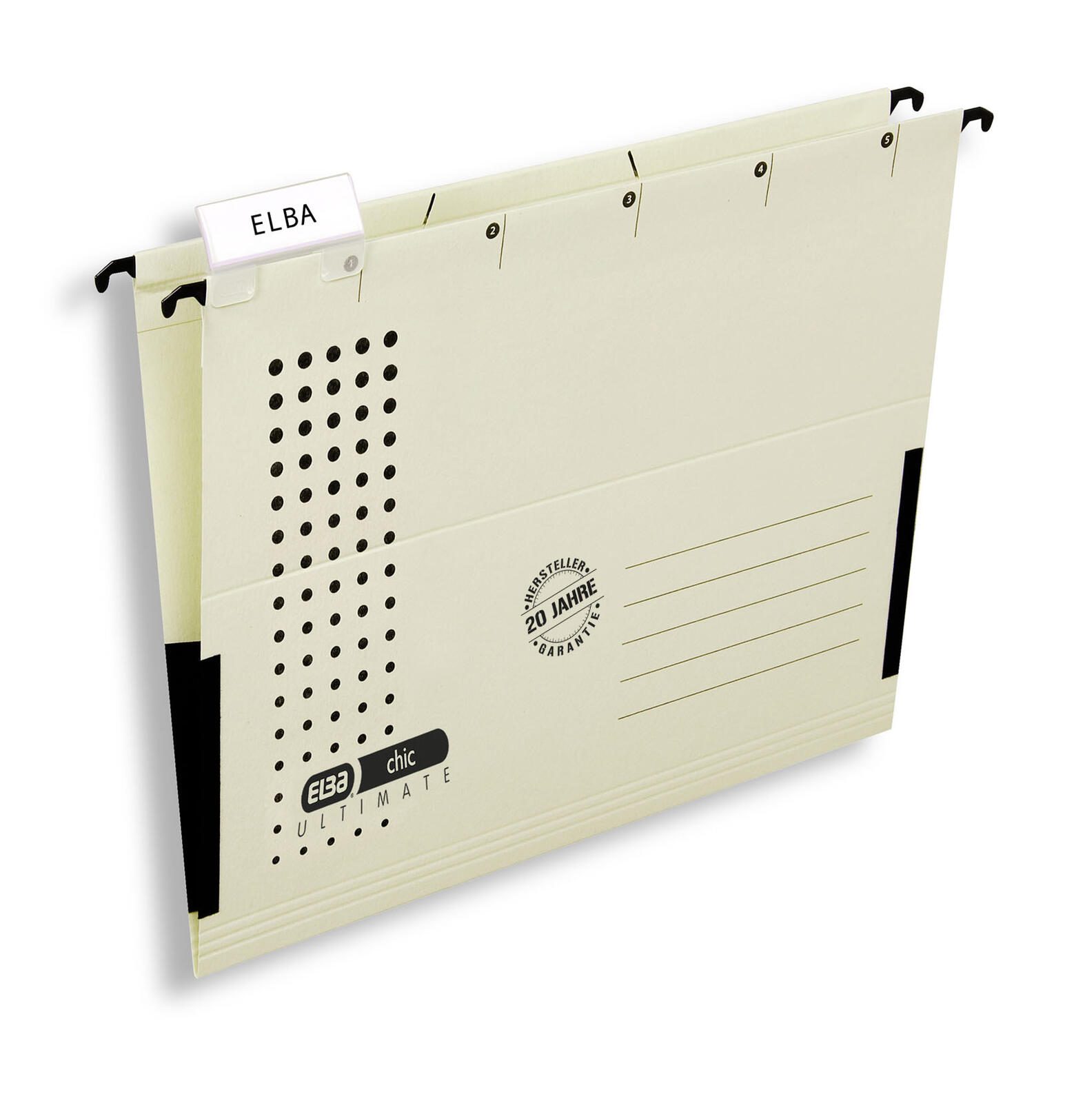 Die ELBA Hängetaschen Chic Ultimate in der eleganten Farbe chamois sind die perfekte Lösung für die organisierte Ablage deiner Unterlagen im DIN A4 Format. Diese praktischen Hängetaschen bestehen aus hochwertigem Karton mit einem Papiergewicht von 240 g/m², was sie besonders stabil und langlebig macht. Sie sind ideal für die lose Ablage von Dokumenten, sodass du jederzeit einen schnellen Zugriff auf deine wichtigen Unterlagen hast. Die stilvolle chamois-Farbe verleiht deinem Büro oder Arbeitsplatz eine ansprechende Note und sorgt dafür, dass deine Unterlagen nicht nur ordentlich, sondern auch ansprechend präsentiert werden. Die Hängetaschen sind nicht nur funktional, sondern auch ein echter Blickfang. Mit einem Pack von 5 Stück erhältst du ausreichend Platz für deine Dokumente und kannst diese problemlos sortieren. Ein weiteres Highlight der ELBA Hängetaschen ist die Lieferung, die verschieb- und einrastbare Vollsichtreiter sowie Beschriftungsschildchen umfasst. Dadurch kannst du deine Dokumente ganz nach deinen Wünschen kennzeichnen und organisieren. Egal, ob für den Einsatz im Büro, in der Schule oder zu Hause – diese Hängetaschen bieten dir die Flexibilität, die du benötigst, um deine Unterlagen effizient zu verwalten. Die ELBA Hängetaschen Chic Ultimate sind die ideale Wahl für all jene, die Wert auf Qualität und Stil legen. Mit diesen praktischen Ablagehilfen bringst du Ordnung in dein Dokumentenmanagement und sorgst gleichzeitig für eine ansprechende Präsentation deiner Unterlagen.Technische Daten