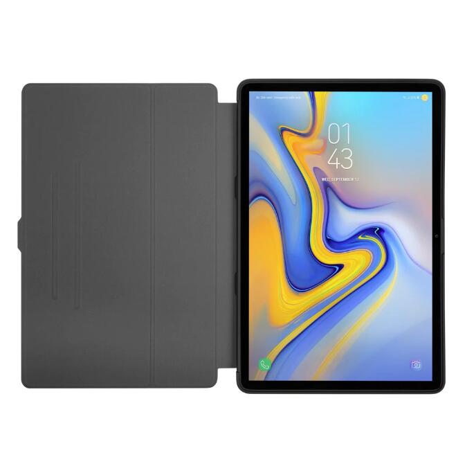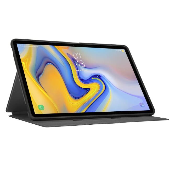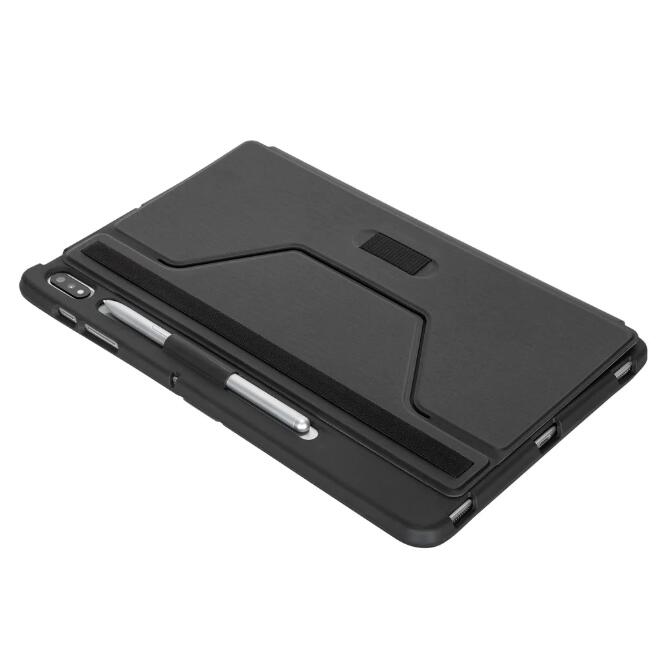 Durch einfaches Umklappen verwandelt sich Ihre Tasche in einen stabilen Ständer für komfortables Tippen. Durch erneutes Umklappen können Sie das Gerät aus nahezu unendlich vielen Blickwinkeln betrachten. Die elastische Stylus-Halterung und der S Pen®-Ladeanschluss sorgen für zusätzlichen Komfort und halten Ihren S Pen einsatzbereit oder Ihren Stylus griffbereit. Präzise Aussparungen bieten einfachen Zugang zu Ihren Bedienelementen, Anschlüssen und Kameraobjektiven. Sogar Ihr Audio wird durch die speziellen Lautsprecheranschlüsse aufgewertet.
