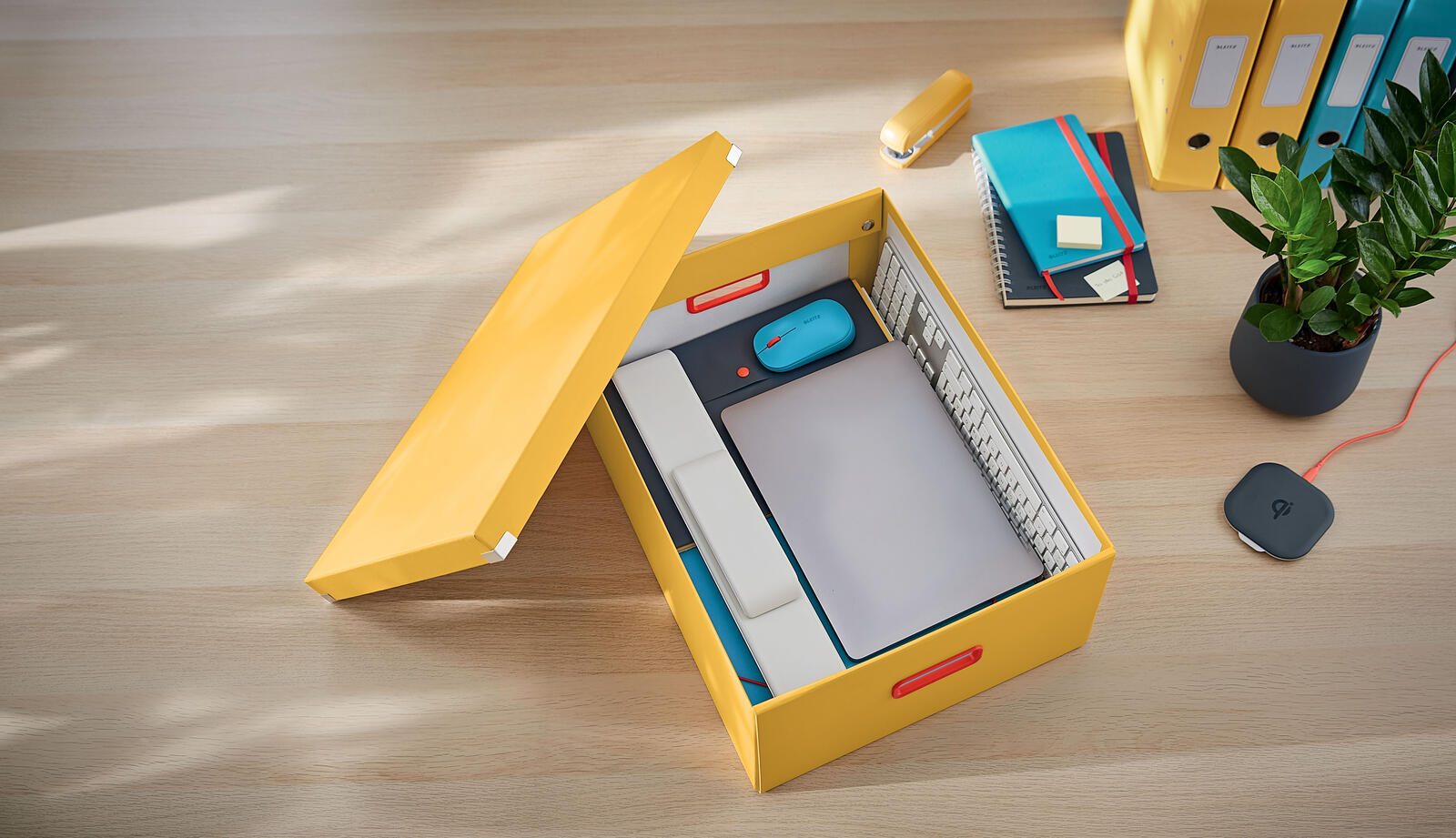 Die LEITZ Aufbewahrungsbox Click&Store in strahlendem Gelb ist die ideale Lösung für die ordentliche Aufbewahrung von Dokumenten und Kleinkram. Mit einem großzügigen Fassungsvermögen von 32,0 Litern bietet sie ausreichend Platz für deine A3-Unterlagen und sorgt dafür, dass alles an seinem Platz bleibt. Die Außenmaße von 36,9 x 48,2 x 20,0 cm machen diese Box zu einem praktischen Begleiter in jedem Raum, sei es im Büro, im Wohnzimmer oder im Kinderzimmer. Hergestellt aus robustem Karton, überzeugt die Aufbewahrungsbox nicht nur durch ihre Funktionalität, sondern auch durch ihre ansprechende Optik. Der leuchtende Farbton Gelb bringt Frische und Freude in deine Umgebung und lässt sich hervorragend mit anderen Farben und Möbelstücken kombinieren. Der praktische Deckel schützt den Inhalt vor Staub und Schmutz, während das integrierte Griffloch das Handling erleichtert. So kannst du die Box bequem anheben und transportieren, ohne dass du dir Sorgen um den Inhalt machen musst. Die Click&Store-Serie von LEITZ steht für durchdachte Aufbewahrungslösungen, die sowohl stilvoll als auch funktional sind. Diese Box ist nicht nur eine praktische Aufbewahrungsmöglichkeit, sondern auch ein dekoratives Element, das deinem Raum einen modernen Touch verleiht. Sie ist nicht ineinander stapelbar, bietet jedoch eine stabile und zuverlässige Aufbewahrung für all deine wichtigen Unterlagen und persönlichen Gegenstände. Mit der LEITZ Aufbewahrungsbox Click&Store triffst du eine hervorragende Wahl für eine organisierte und stilvolle Aufbewahrungslösung, die sowohl praktisch als auch ästhetisch ansprechend ist.Technische Daten