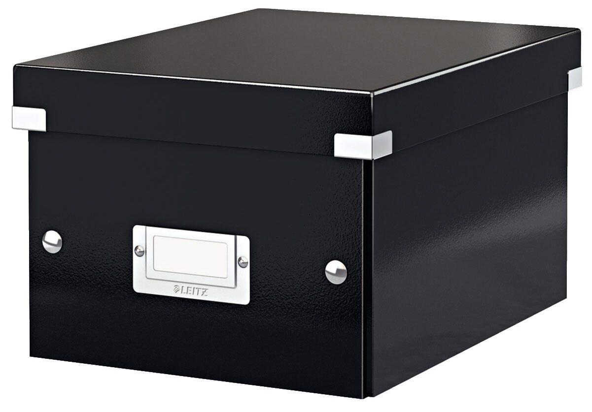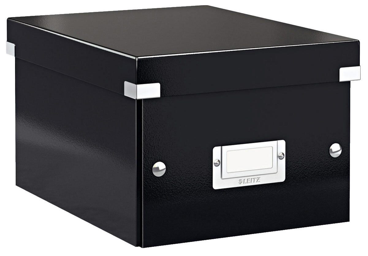 Die LEITZ Aufbewahrungsbox Click & Store präsentiert sich als stilvolle und praktische Lösung für die Aufbewahrung deiner Unterlagen und Erinnerungen. Mit einem großzügigen Fassungsvermögen von 7,4 Litern bietet sie ausreichend Platz für DIN A5 quer Formate, Fotos und vieles mehr. Die Außenmaße von 21,6 x 28,2 x 16,0 cm machen sie zu einem kompakten und dennoch geräumigen Aufbewahrungsort, der sich mühelos in jeden Raum einfügt. Gefertigt aus hochwertigem Karton in elegantem Schwarz, vereint diese Aufbewahrungsbox Funktionalität mit einem modernen Design. Der stabile Deckel sorgt dafür, dass der Inhalt jederzeit geschützt ist und die Box gleichzeitig stapelbar ist, was dir hilft, Platz zu sparen und Ordnung zu halten. Ob im Büro, im Wohnzimmer oder im Kinderzimmer, die Click & Store Box passt sich deinen Bedürfnissen an und sorgt für eine übersichtliche Ablage. Ein weiterer Vorteil der LEITZ Aufbewahrungsbox ist ihre Vielseitigkeit. Sie eignet sich ideal für die Aufbewahrung von Dokumenten, Fotos oder anderen wichtigen Gegenständen, die du sicher und ordentlich verstauen möchtest. Mit dieser Box hast du alles griffbereit und dennoch ordentlich verstaut. Die LEITZ Aufbewahrungsbox Click & Store ist nicht nur praktisch, sondern auch ein echter Blickfang. Ihr elegantes Design macht sie zu einem stilvollen Accessoire in jedem Raum. Nutze die Vorteile dieser durchdachten Aufbewahrungslösung und genieße die Ordnung, die sie in dein Leben bringt.Technische Daten