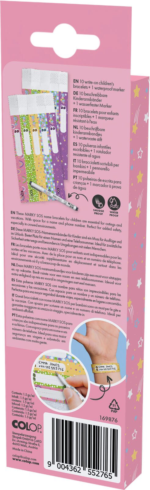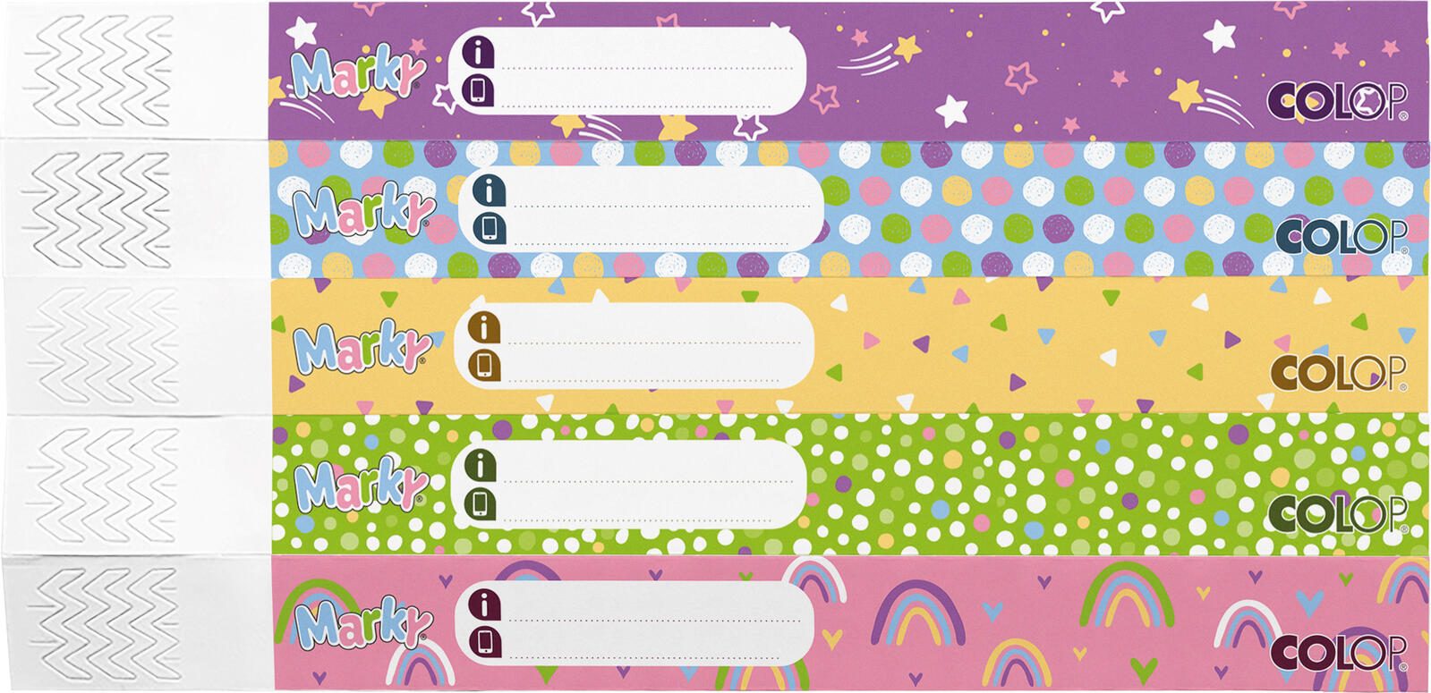 COLOP Sicherheitsbänder für Kinder lila, hellblau, gelb, grün, rosa