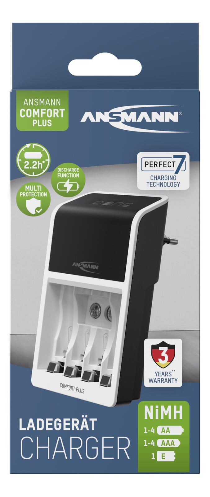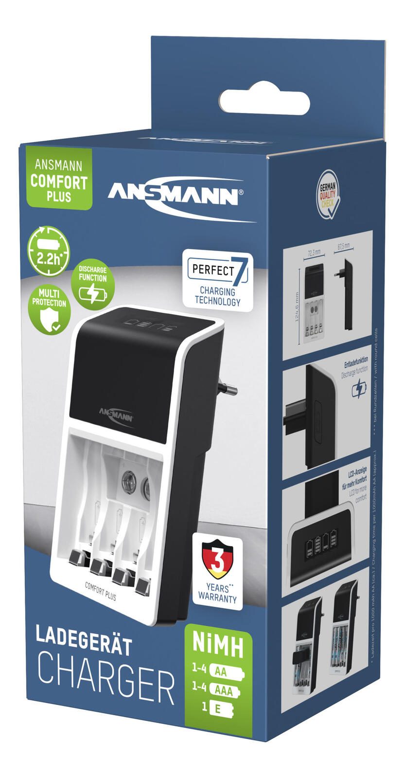 Das ANSMANN Akku-Ladegerät Comfort Plus ist die ideale Lösung für deine Akkus. In elegantem Schwarz gehalten, bietet es zahlreiche nützliche Eigenschaften, die das Laden deiner Akkus zum Kinderspiel machen.