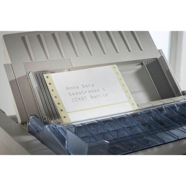 Die AVERY Zweckform Computer-Endlosetiketten 88,9 x 23,0 mm sind die ideale Lösung für deine Etikettierbedürfnisse. Mit einer Größe von 88,9 x 23,0 mm bieten diese rechteckigen Etiketten ausreichend Platz für alle wichtigen Informationen, die du aufdrucken möchtest. Jedes Paket enthält beeindruckende 6.000 Etiketten, sodass du für eine lange Zeit bestens ausgestattet bist. Hergestellt aus hochwertigem, chlorfrei gebleichtem Papier, sind diese Etiketten nicht nur umweltfreundlich, sondern auch vielseitig einsetzbar. Die matte Oberfläche sorgt dafür, dass deine Druckergebnisse klar und gut leserlich sind. Du kannst die Etiketten bequem mit einem Nadel- oder Matrixdrucker, von Hand oder mit einer Schreibmaschine beschriften. Die abgerundeten Ecken verleihen den Etiketten ein professionelles Aussehen und erhöhen die Benutzerfreundlichkeit. Ein weiteres praktisches Merkmal ist der seitlich gelochte Rand, der die Handhabung erleichtert und ein einfaches Abziehen der Etiketten ermöglicht. Diese selbstklebenden Etiketten haften zuverlässig auf verschiedenen Oberflächen und sorgen dafür, dass deine Beschriftungen an Ort und Stelle bleiben. Sie sind nicht ablösbar, was sie ideal für dauerhafte Anwendungen macht. Zudem sind sie lösemittelfrei und damit sicher in der Anwendung. Die AVERY Zweckform Computer-Endlosetiketten sind perfekt für die Organisation von Dokumenten, das Beschriften von Produkten oder das Erstellen von individuellen Adressaufklebern. Mit ihrer hohen Qualität und der großen Menge pro Packung bieten sie ein hervorragendes Preis-Leistungs-Verhältnis. Vertraue auf AVERY Zweckform, um deine Etikettierprojekte effizient und professionell umzusetzen.Technische Daten