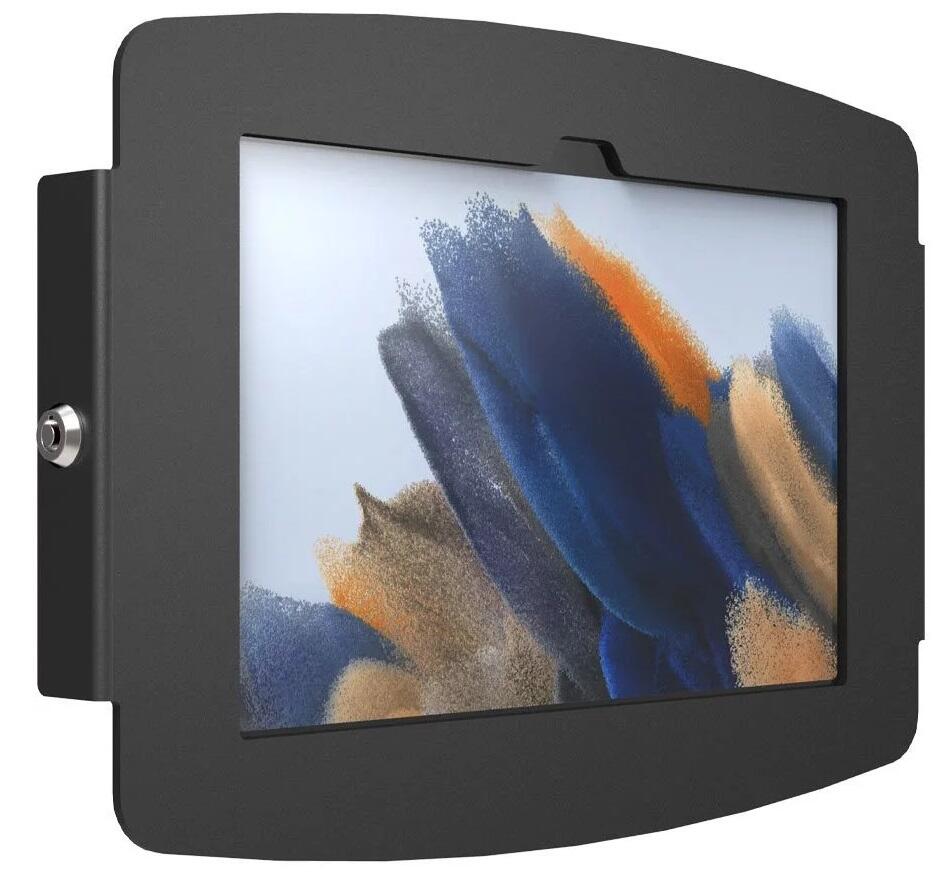 Das Space Galaxy Tab A-Gehäuse hat abgerundete Kanten und offene Ecken, die für die bessere Belüftung sorgen, und bietet eingeschränkten Zugriff auf Tasten und Eingänge. Wie bei all unseren Galaxy und Tablet Sicherheitsgeräten kann das Tablet kontinuierlich laden, wenn es im Gehäuse befestigt ist. Auch Verbindungskabel für Peripheriegeräte können angeschlossen werden.