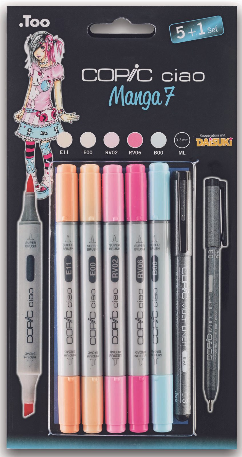 COPIC® Ciao 5+1 Set Manga 7 Layoutmarker-Set 1.0 + 6.0 mm Mehrfarbig 1 Pack = 6 St.