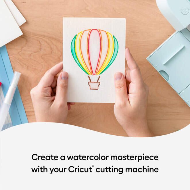 Gemischt, mit Farbverlauf oder weichen Übergängen: Erstelle dein Kunstwerk in Aquarell mit diesem Set. Lasse dein Design von deiner Maschine mit Stiften zeichnen, füge dem Pinsel einen Spritzer Wasser hinzu* und erstelle wunderschöne Aquarelleffekte von Hand. Für beste Ergebnisse mit Aquarellkarten verwenden. Zur Verwendung mit kompatiblen Cricut Maschinen. * Pinsel für Freihand-Aquarelleffekte im Lieferumfang enthalten