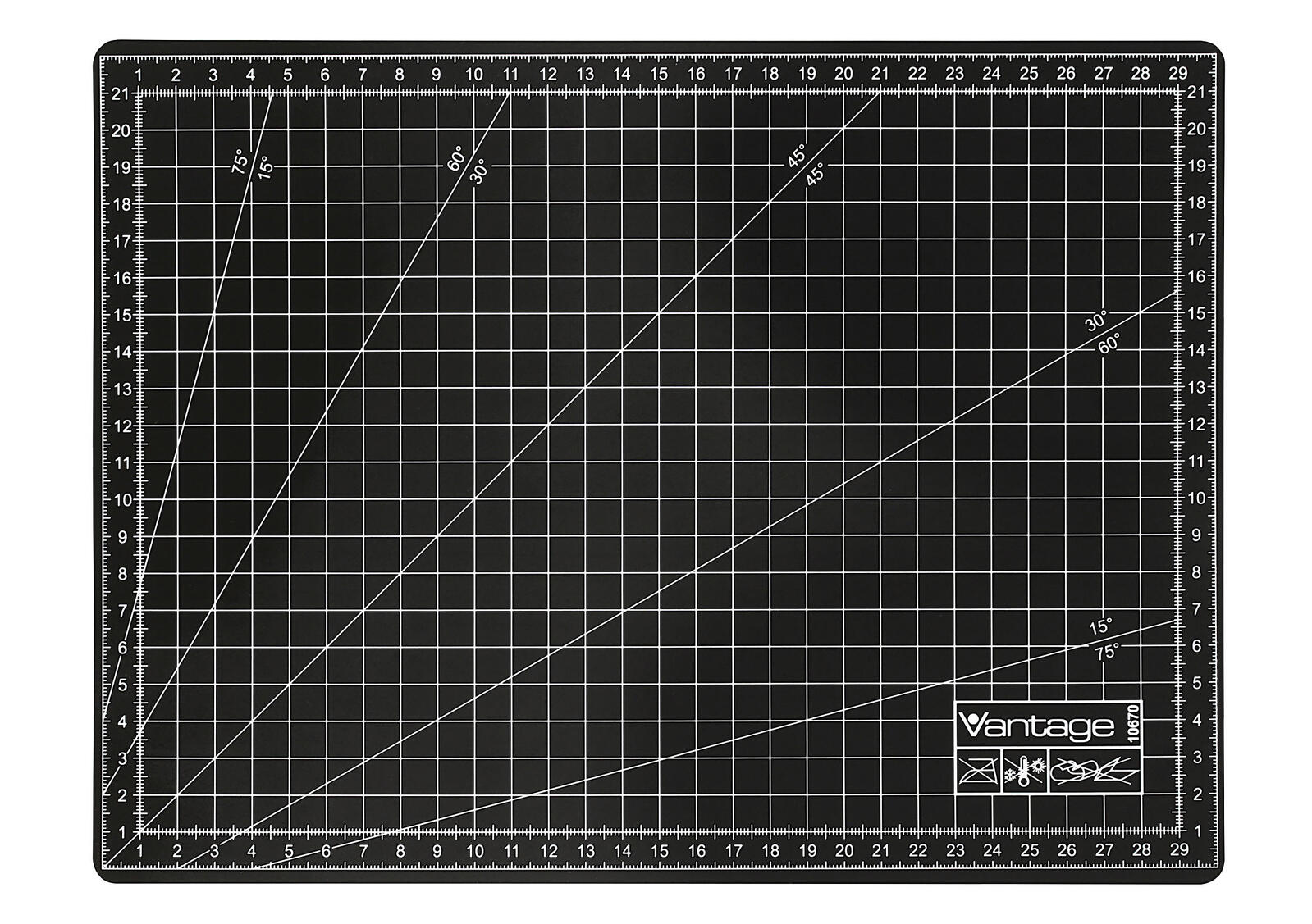 Gefertigt aus hochwertigem Kunststoff, gewährleistet die Schneidematte Langlebigkeit und Widerstandsfähigkeit gegenüber wiederholtem Gebrauch. Die integrierten Winkelmarkierungen von 15°, 45° und 75° erleichtern das exakte Anlegen und Schneiden von Papier, Karton oder anderen Materialien und unterstützen Sie dabei, präzise Ergebnisse zu erzielen.