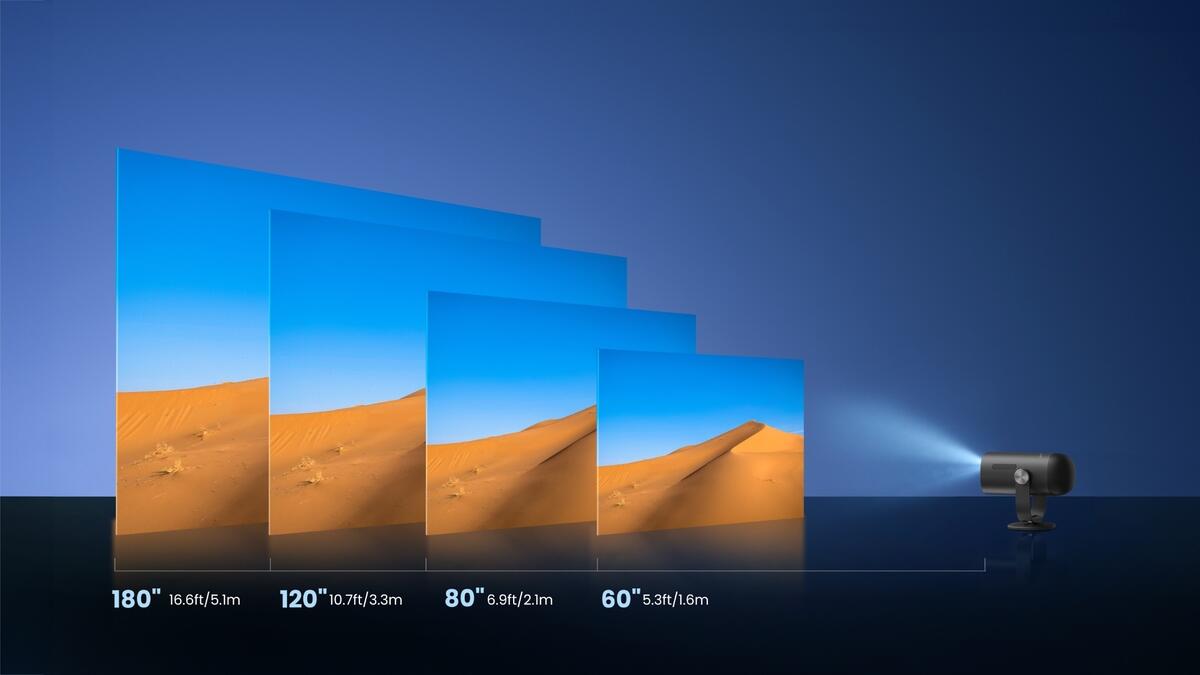 Passe dein Seherlebnis an! Projeziere Bilder bis zu 180 Zoll auf fast jede Oberfläche - Wände, Decken, Bildschirme oder sogar Zelte.