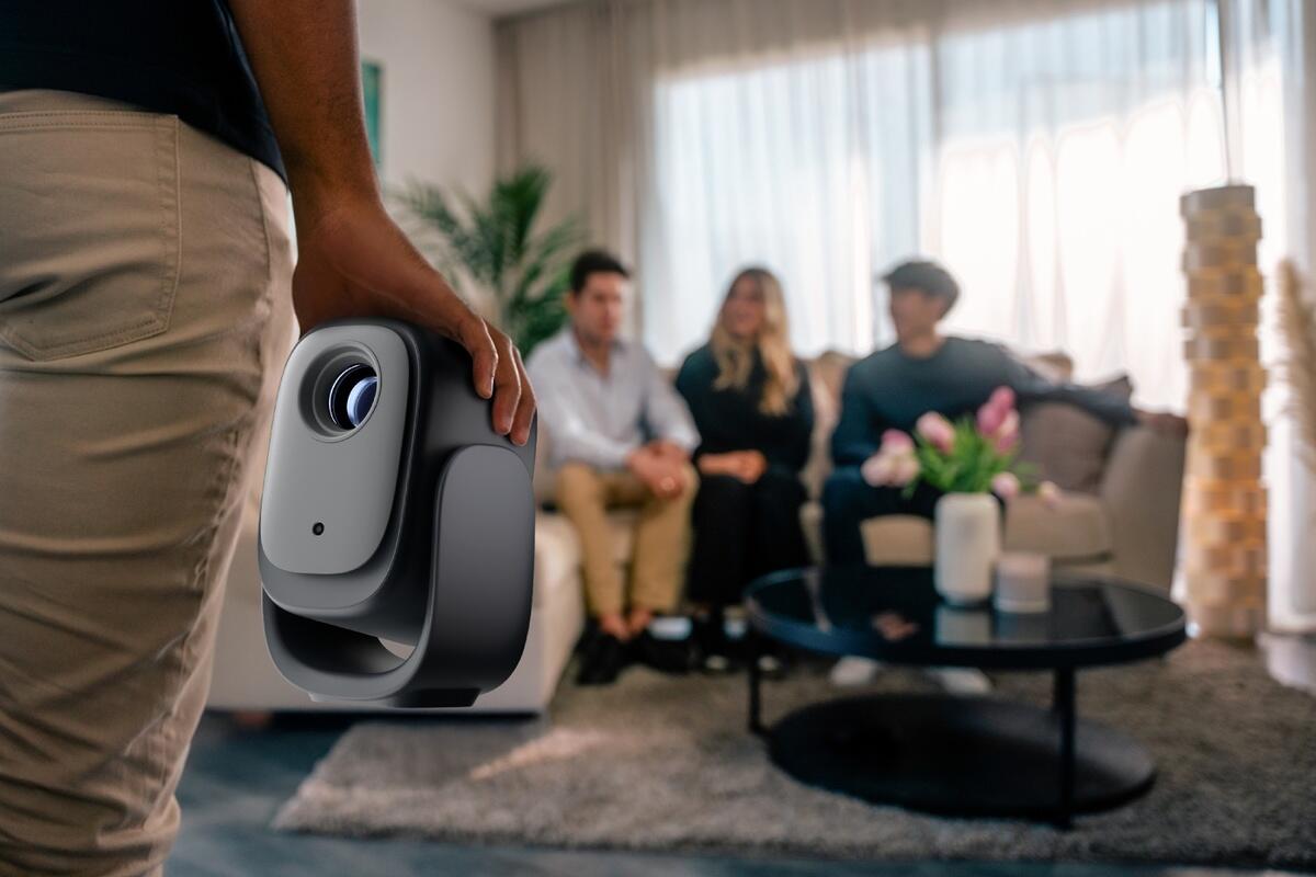Ihr smarter Mini-Heimkino-Projektor – bereit für den Einsatz.