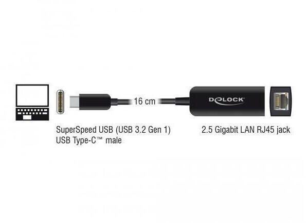 - Anschlüsse: 1 x SuperSpeed USB (USB 3.2 Gen 1) USB Type-C™ Stecker > 1 x 2,5 Gigabit LAN RJ45 Buchse