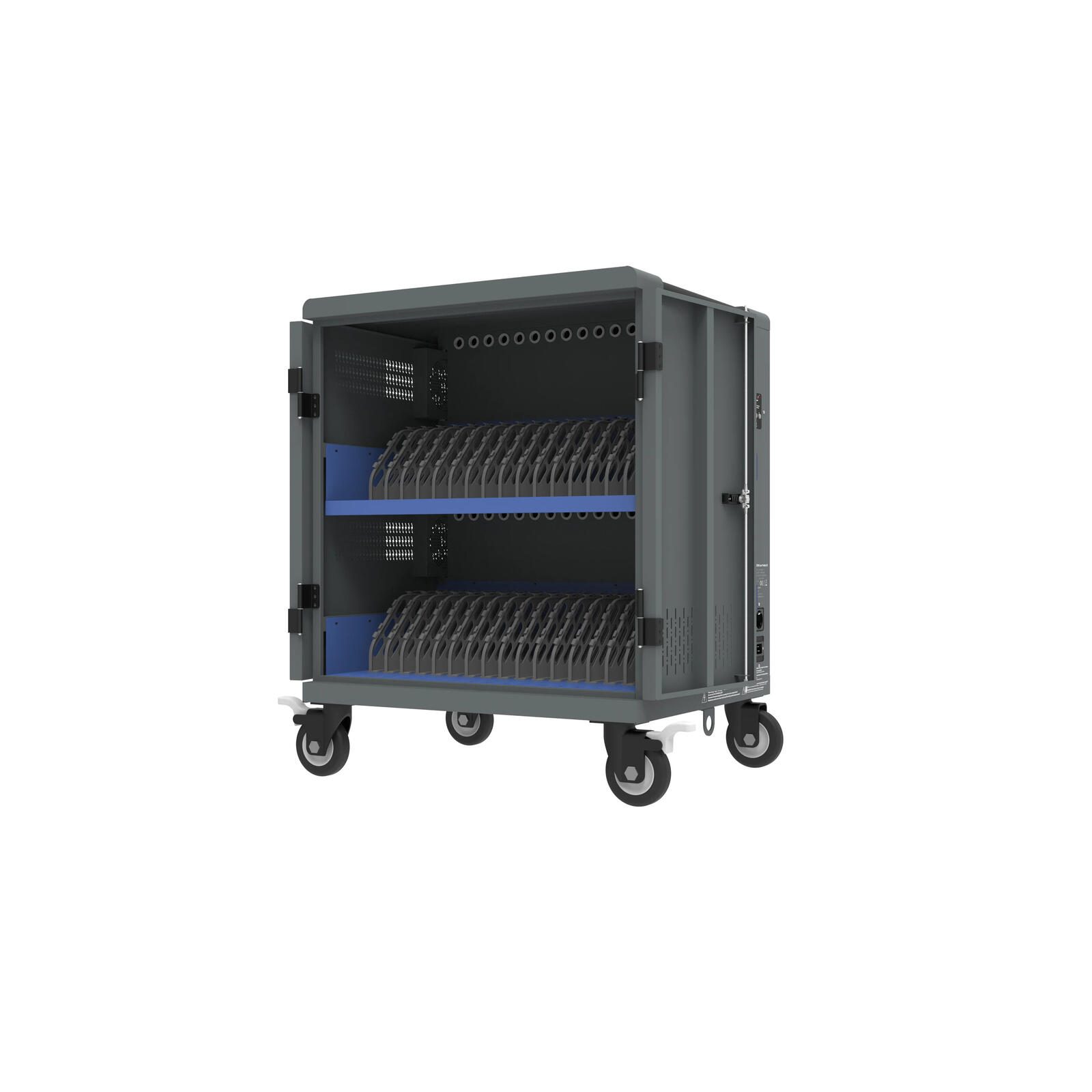 - Platz für bis zu 32 Laptops (bis 15,6<) und simultanes Aufladen über die Original-Netzteile möglich
